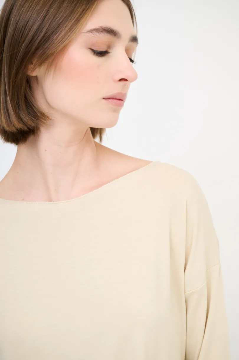 Best KIKISIX MAGLIA OVER SCOLLO BARCA MANICA 3/4 BEIGE
