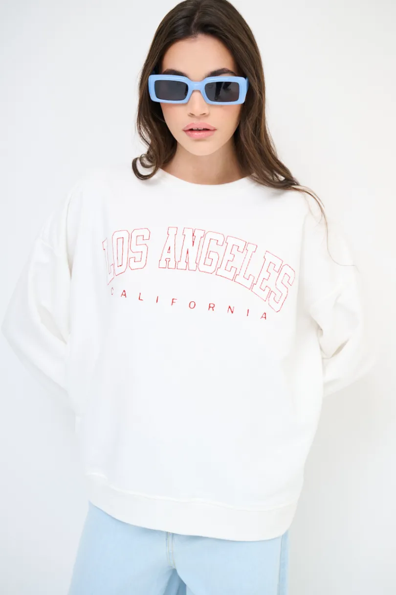 Clearance KIKISIX FELPA OVER STAMPA LOS ANGELES BIANCO
