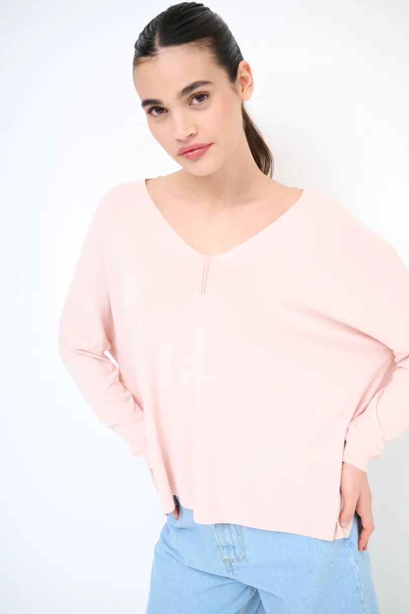 Clearance KIKISIX MAGLIA SCOLLO V OVER MANICA LUNGA ROSA