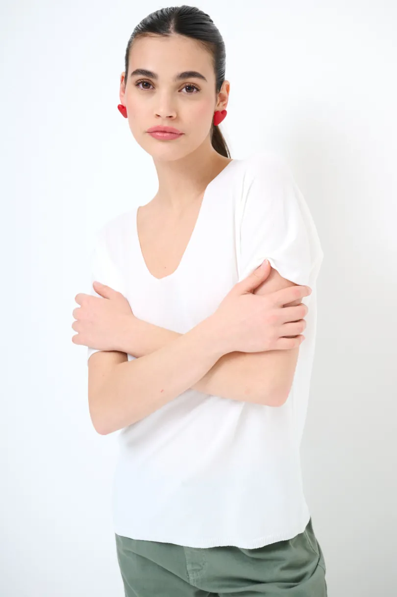 Maglia in viscosa oversize a mezza manica con scollo a v.