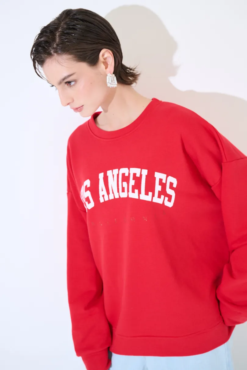 Fashion KIKISIX FELPA OVER STAMPA LOS ANGELES ROSSO