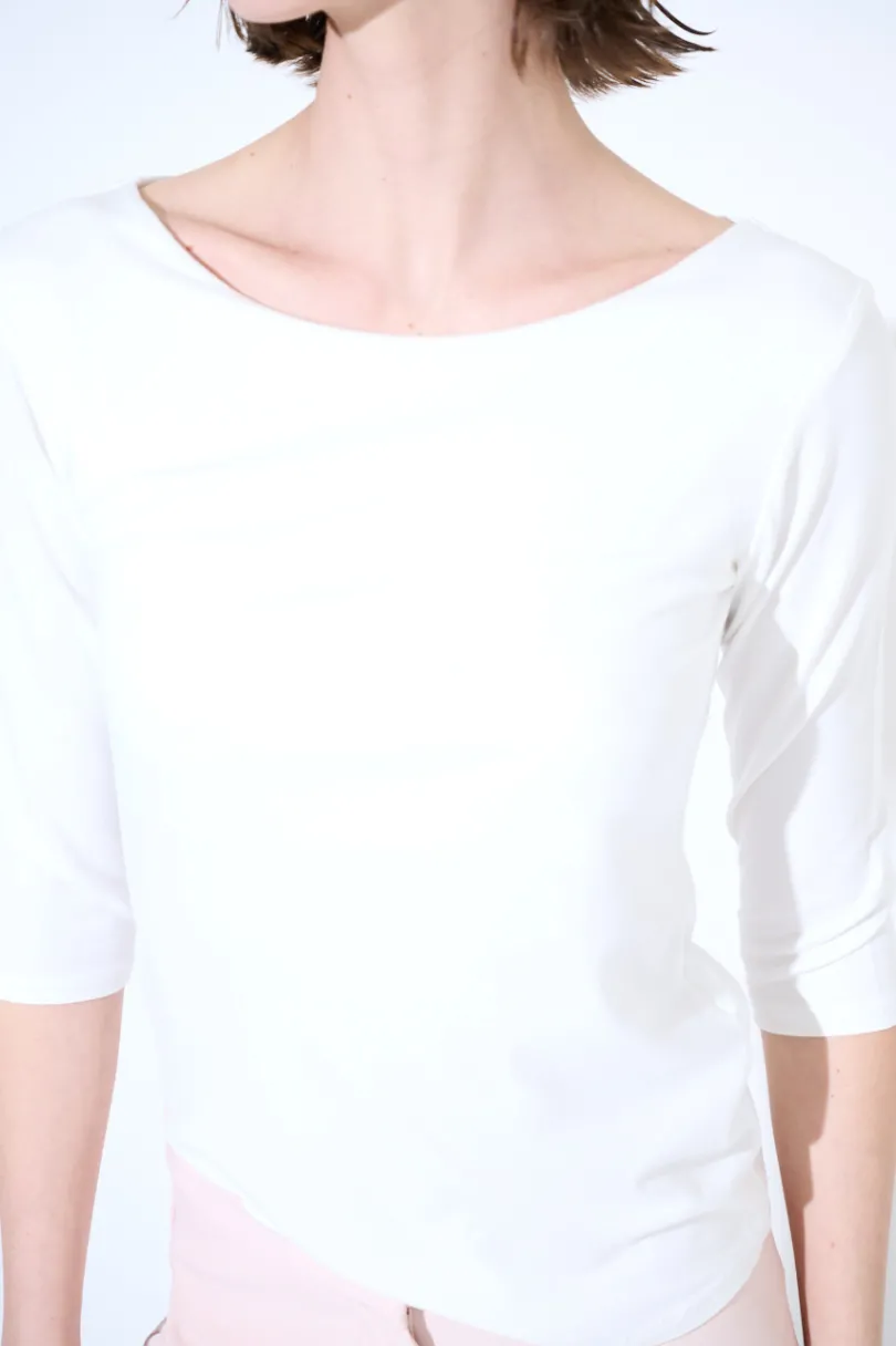 Maglia basica slim con scollo madonna e manica a 3/4.