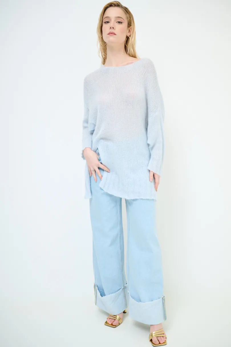Maxi maglia con manica calata a 3/4 con spacchi laterali, tessuto con paillettes.