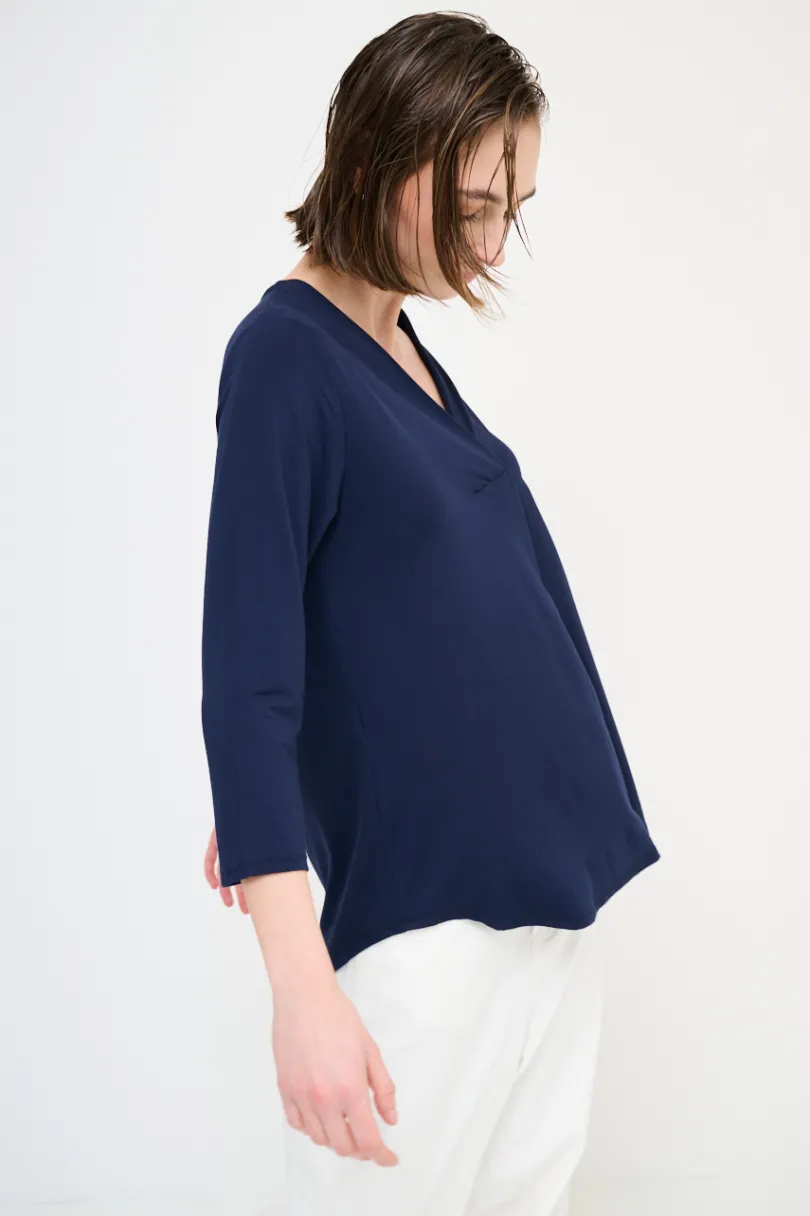 Maglia basica oversize con scollo a v con piega e manica a 3/4.