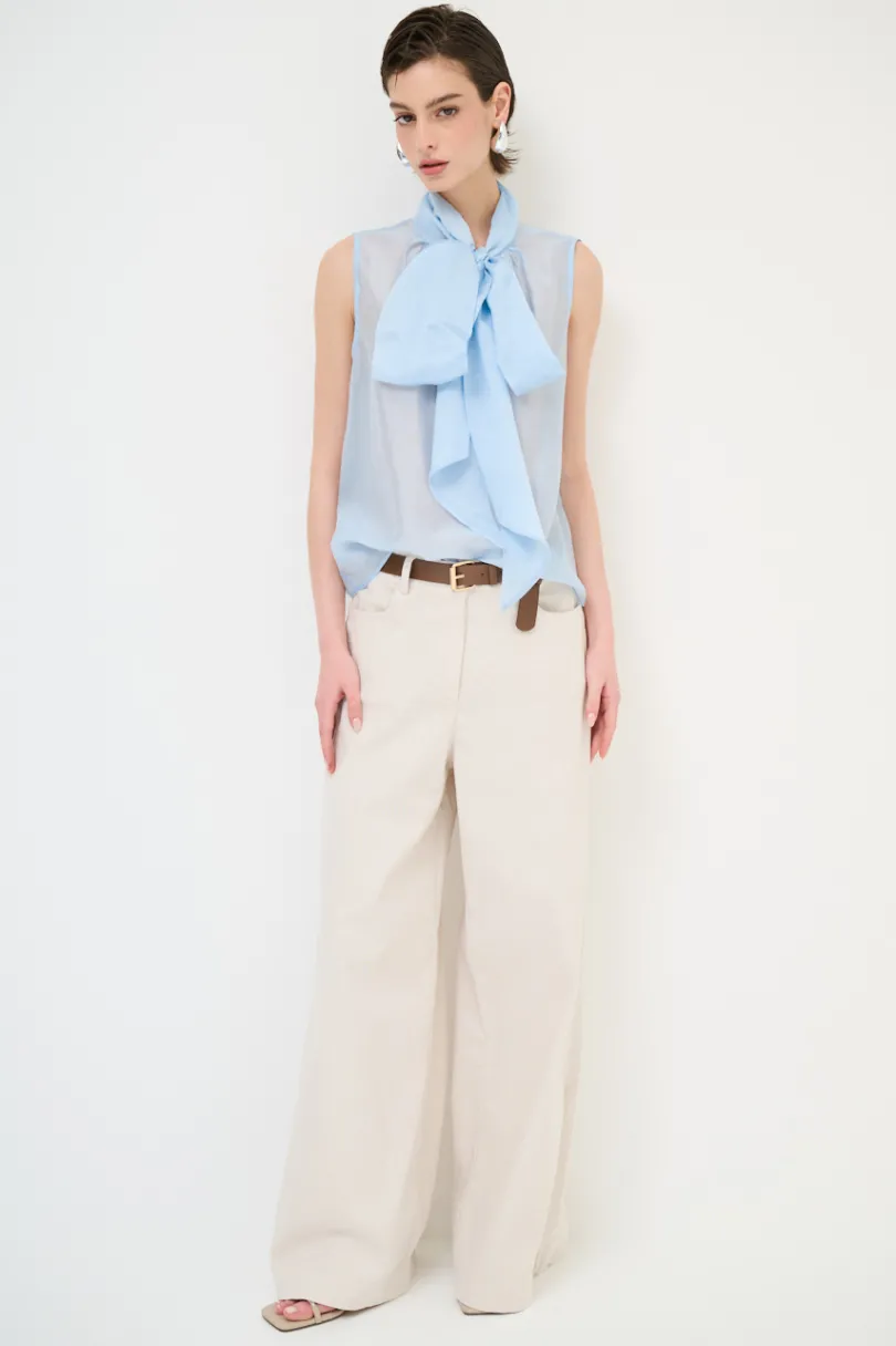 Pantalone ampio in cotone con cintura in vita e con tasche.