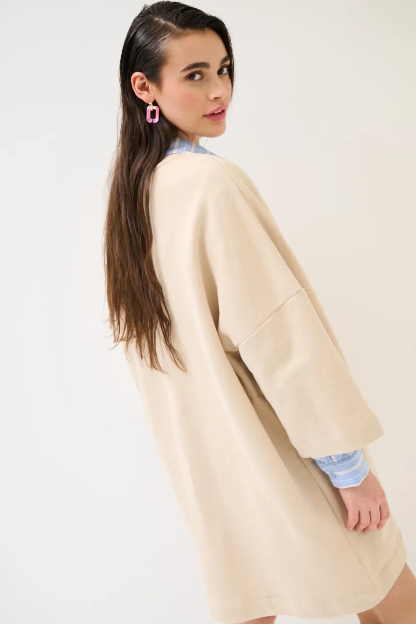 Abito over in maglia garzata con ricamo “21” in pizzo sul fronte, a girocollo con manica a 3/4.