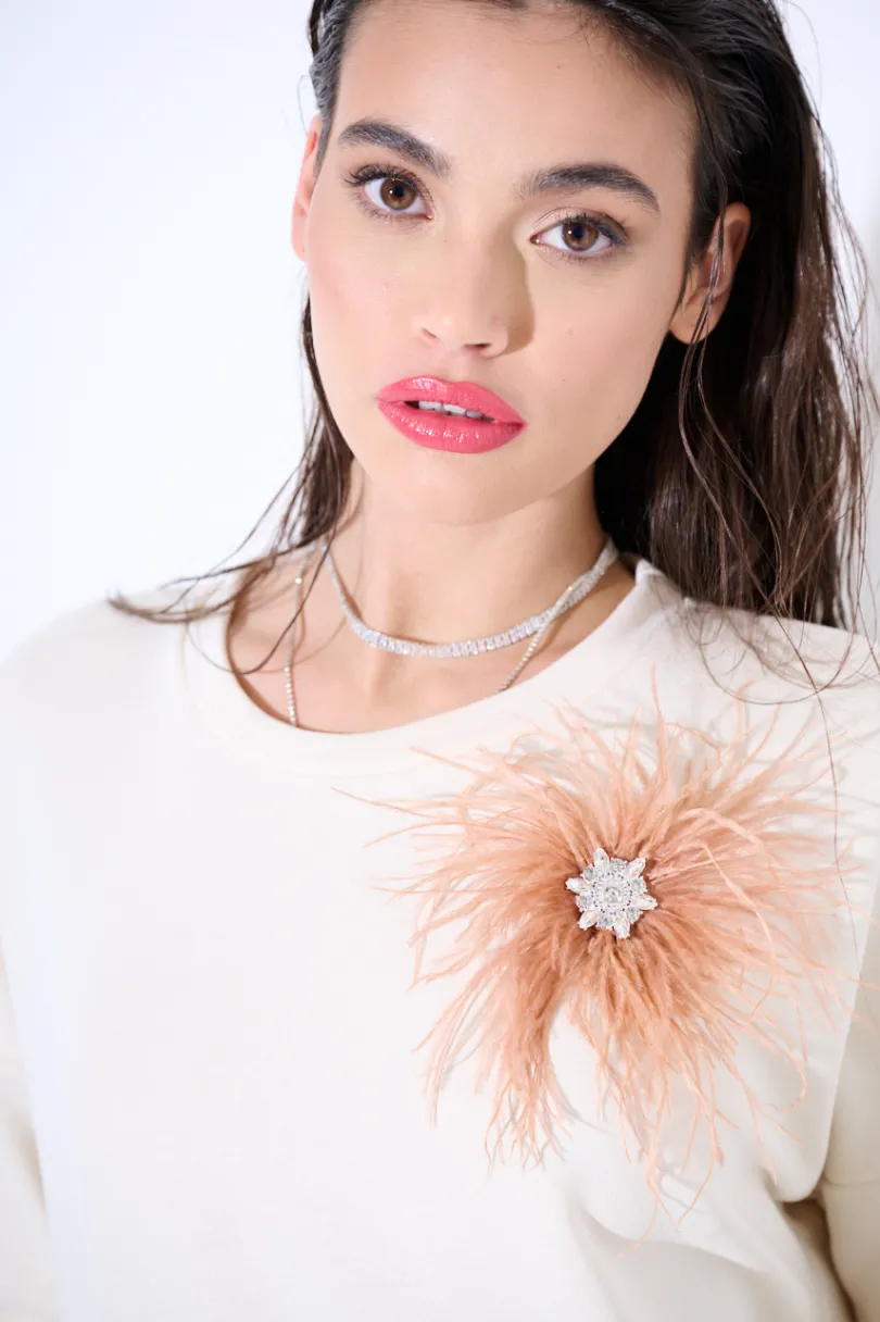 Online KIKISIX FELPA CON PIZZO SOTTO +PINZA PIUME BEIGE