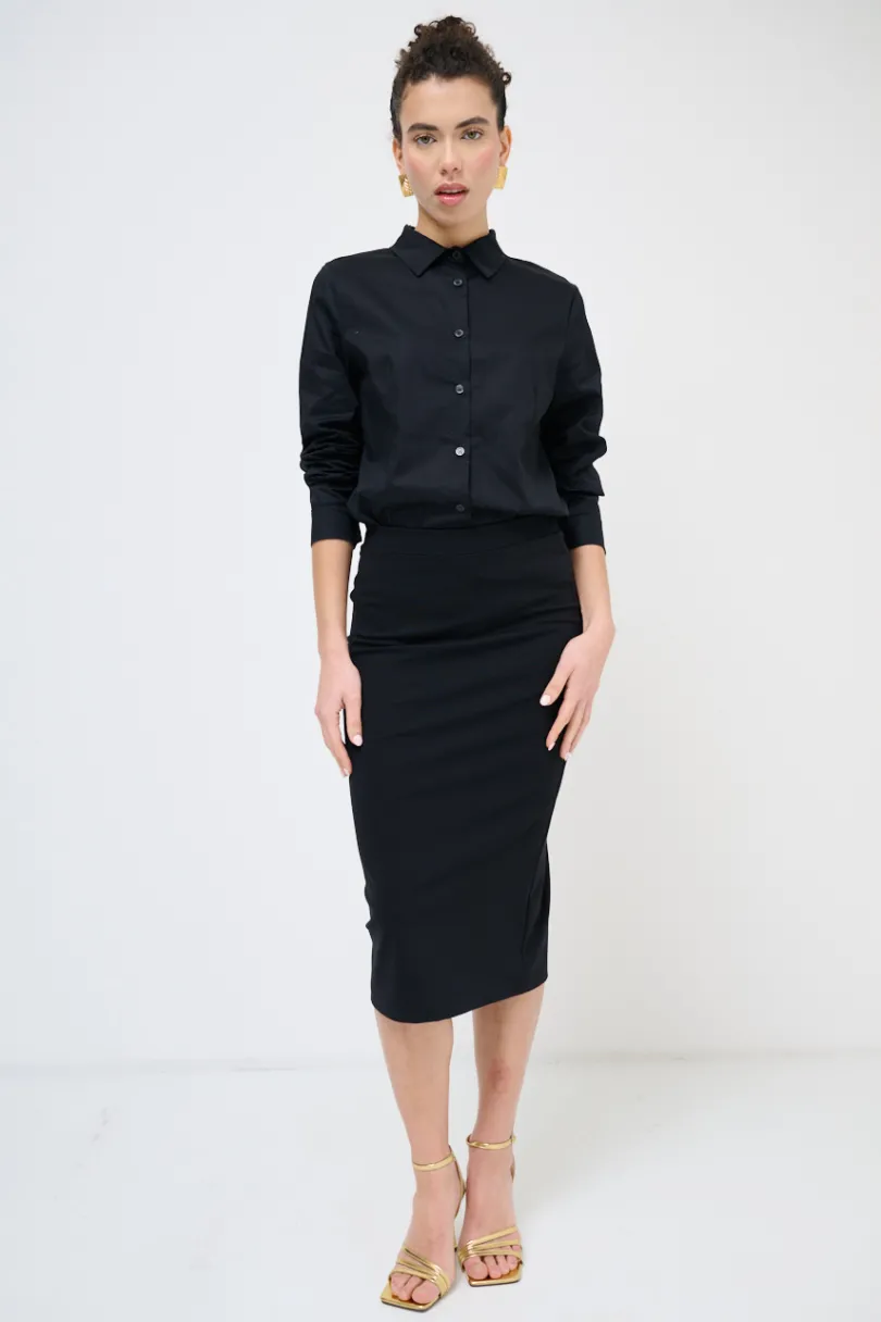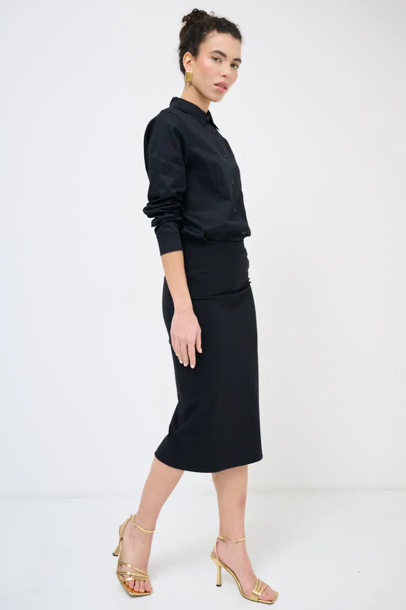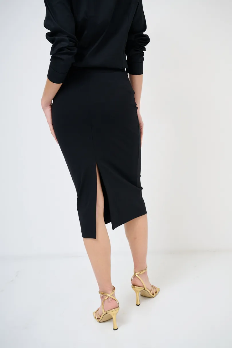 Gonna a tubino in punto milano con elastico in vita e spacco sul retro.