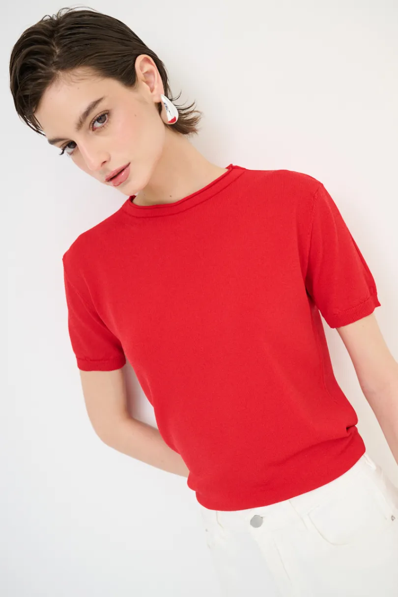 Outlet KIKISIX PARICOLLO MEZZA MANICA ROSSO