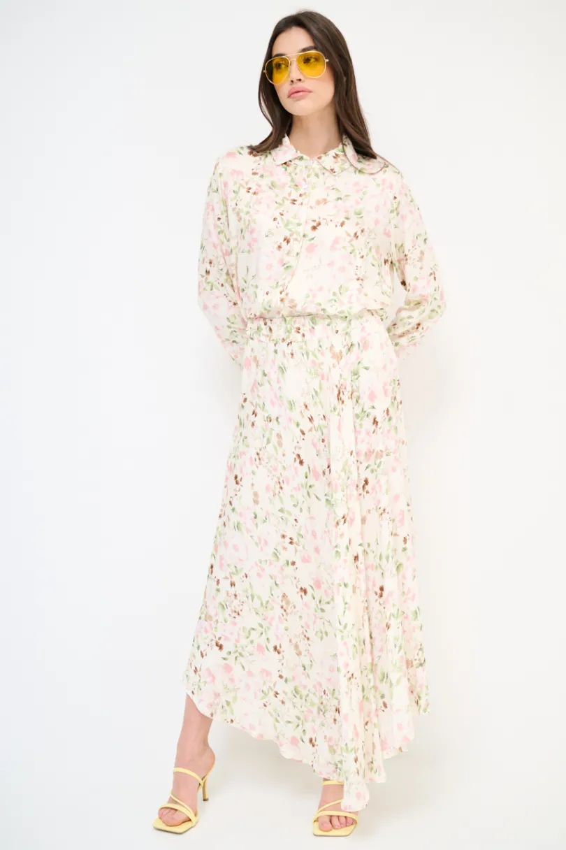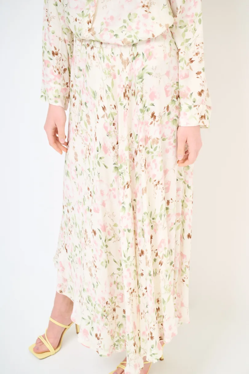 Gonna midi a ruota con stampa floreale, elasticizzata in vita.