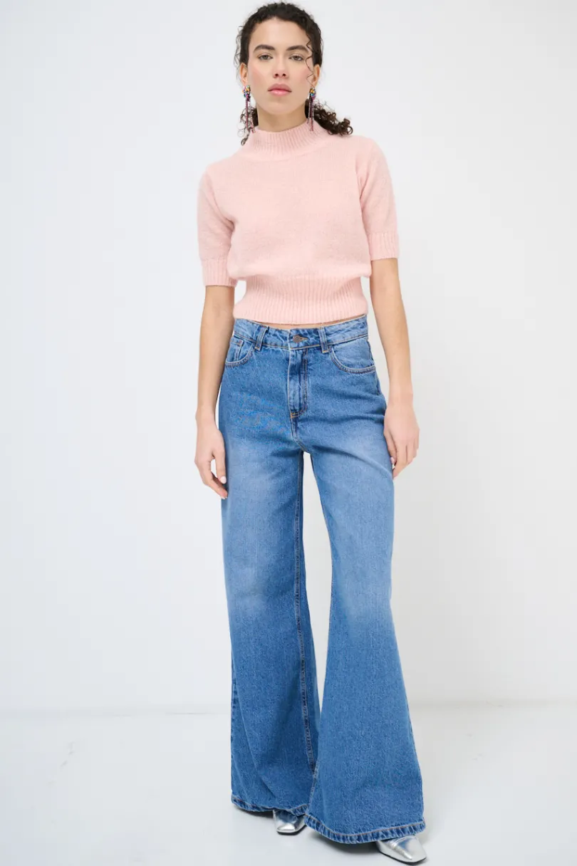 Jeans dritto in denim a 5 tasche con schiariture sulla lunghezza.