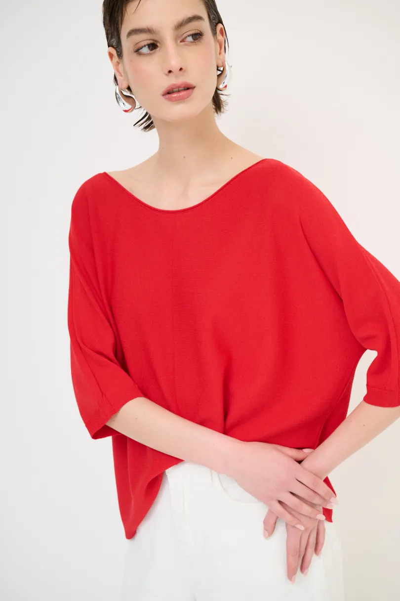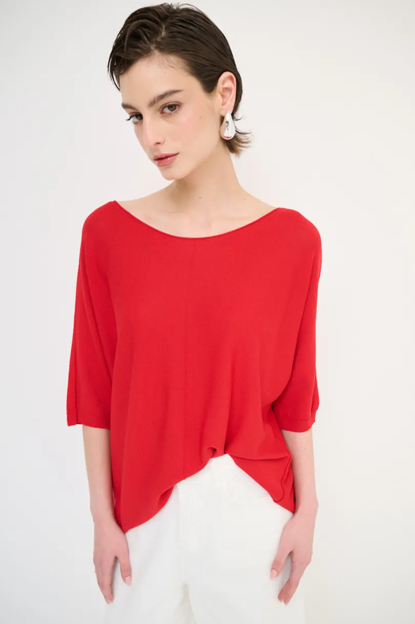 Maglia in viscosa oversize a mezza manica con cucitura centrale.