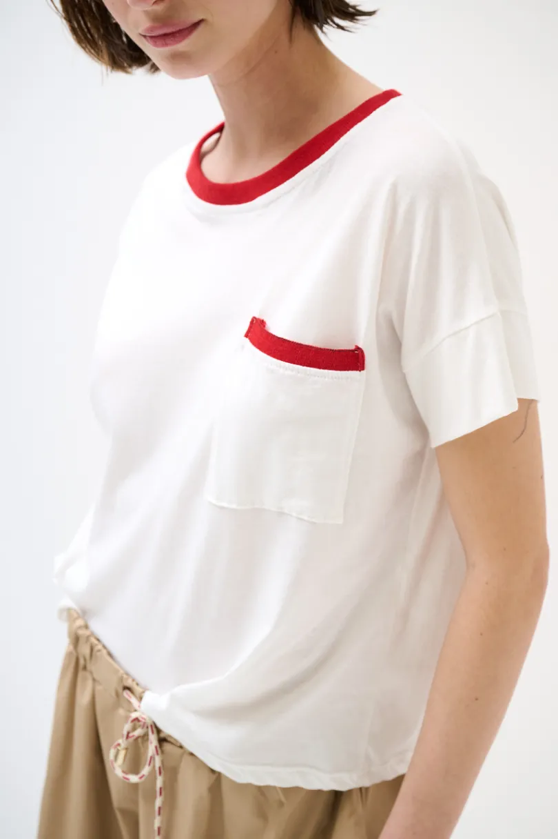 T-shirt con profili a costine a contrasto e taschino.