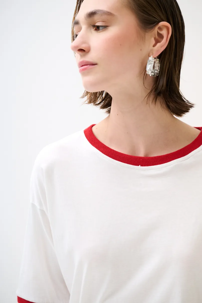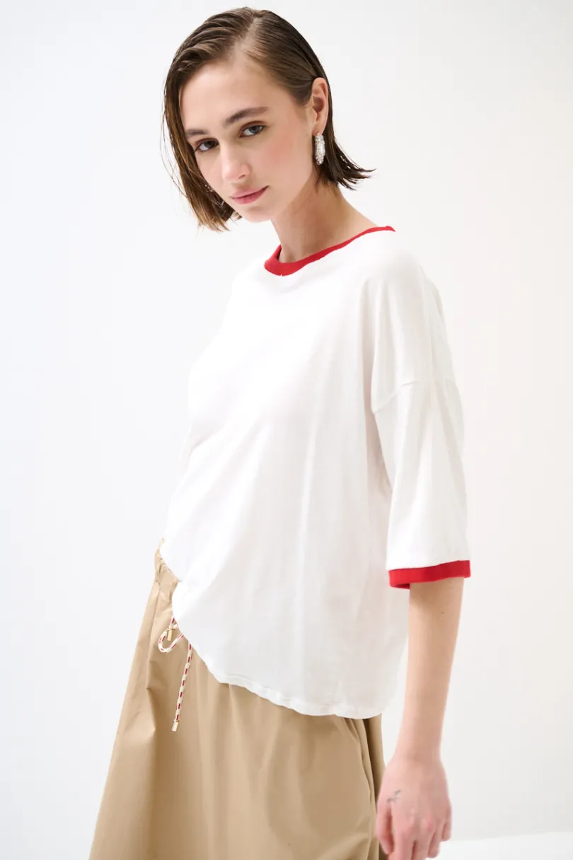 T-shirt con profili a costine a contrasto e manica a 3/4.