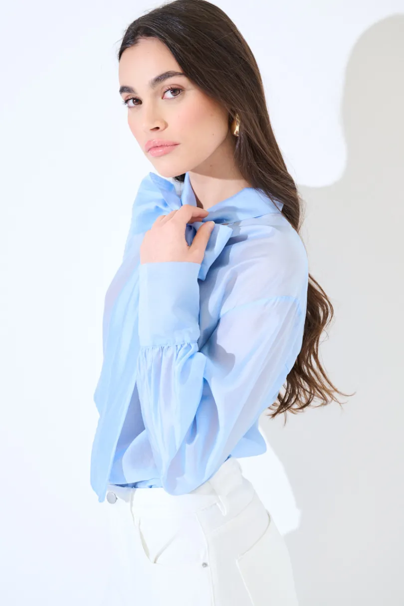 Blusa in voile semitrasparente con fiocco sullo scollo.