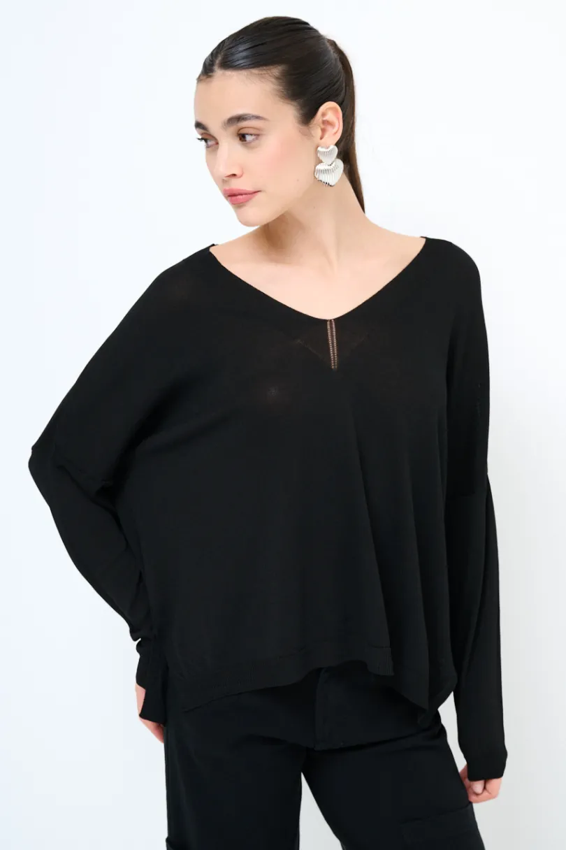 Clearance KIKISIX MAGLIA SCOLLO V OVER MANICA LUNGA NERO
