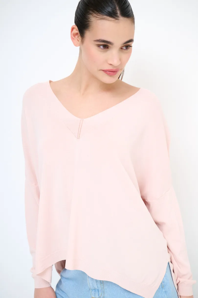 Maglia in viscosa oversize con scollo a v e manica lunga.