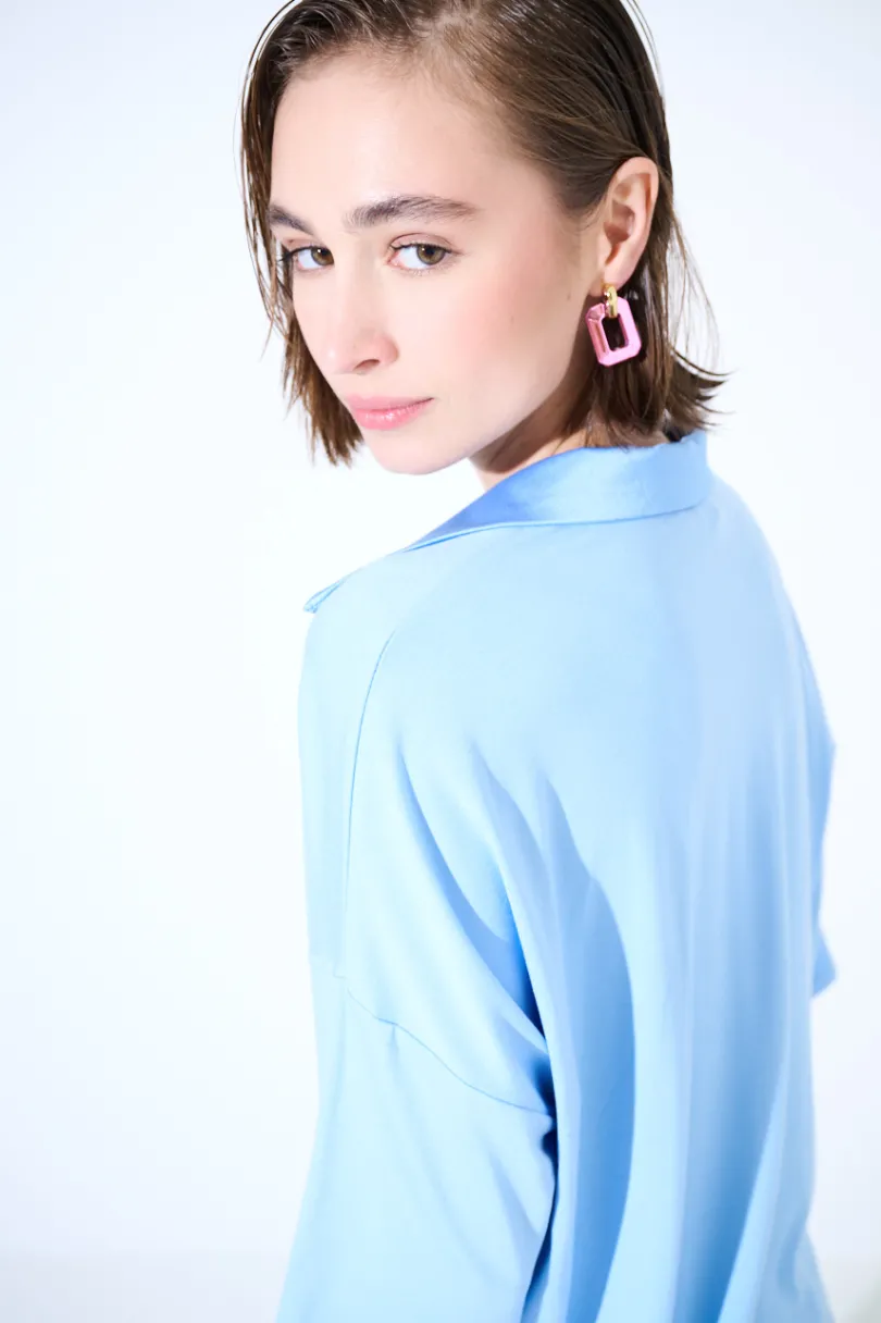 Polo basica crop con colletto in raso e manica a 3/4.