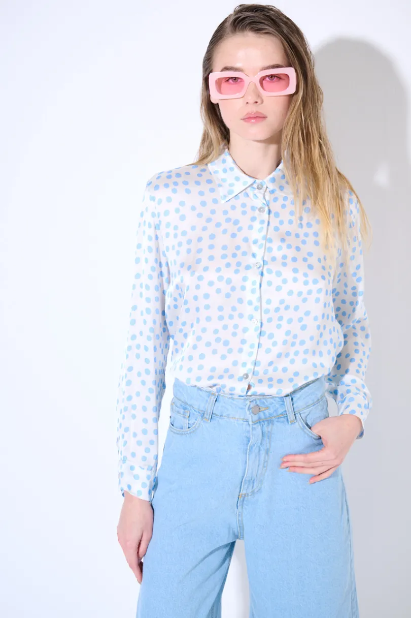 Camicia basic a pois abbottonata frontalmente.