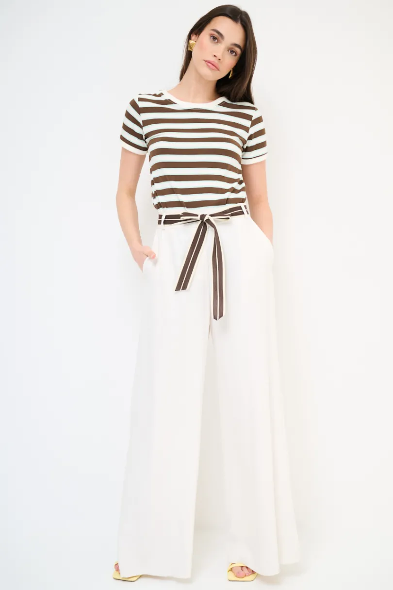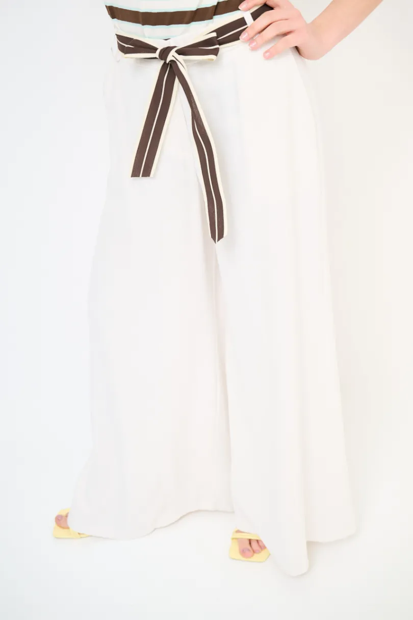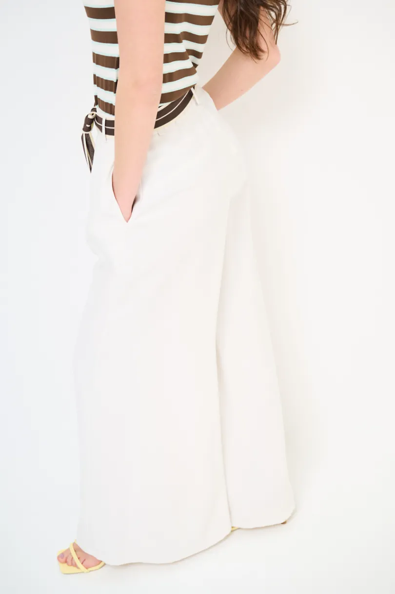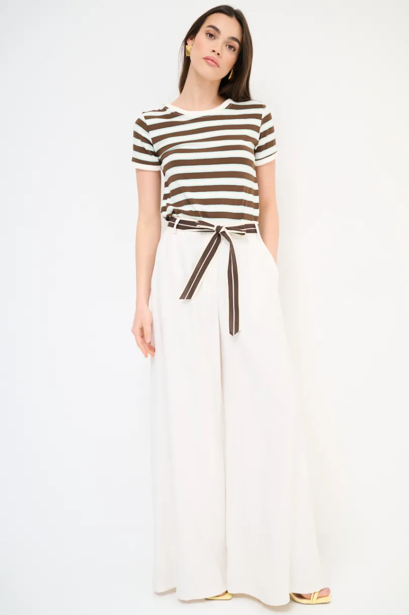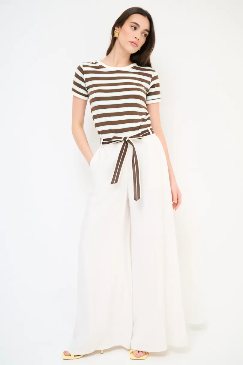 Pantalone a palazzo in tencell, elasticizzato sul retro, con cintura in vita.