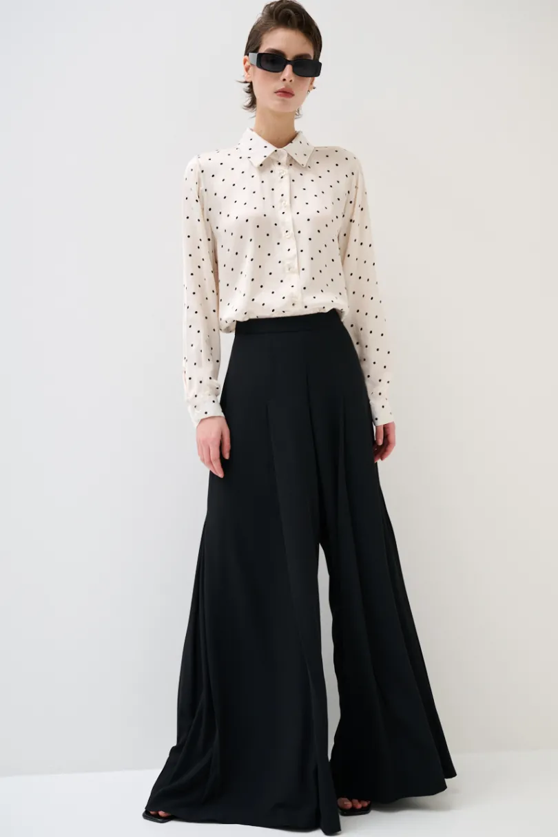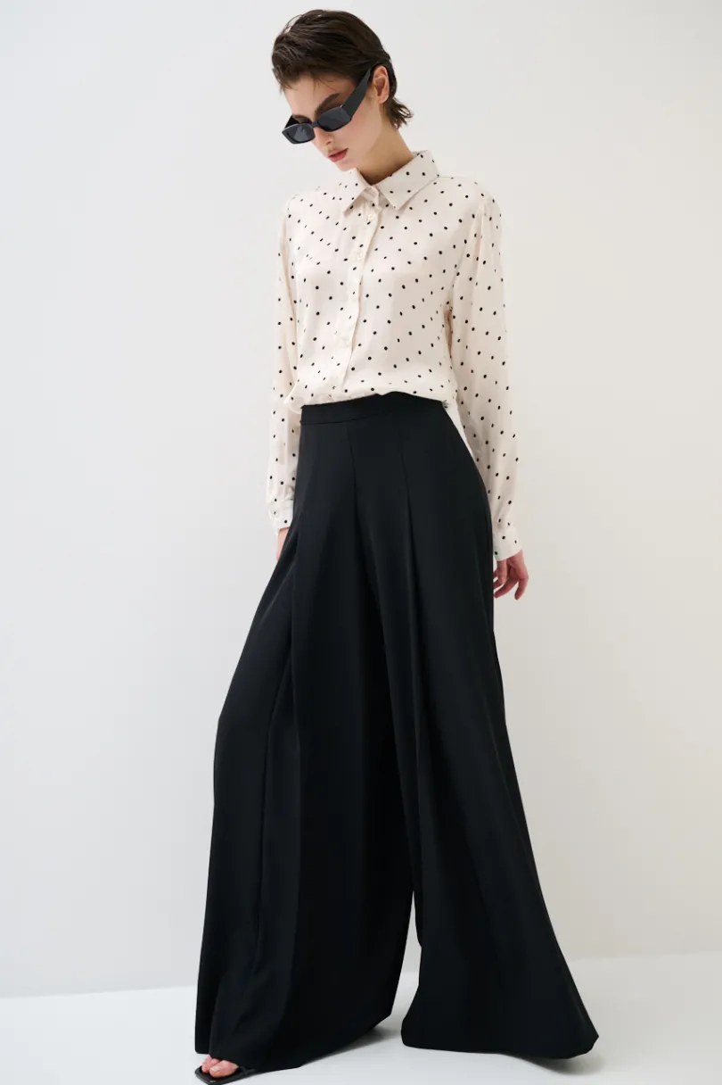 Pantapalazzo in cadì con pieghe frontali e sul fondo.
