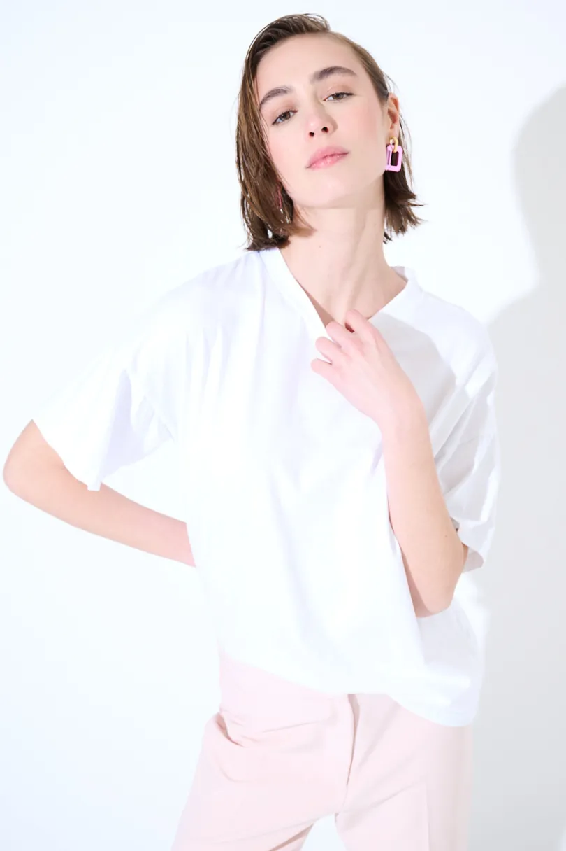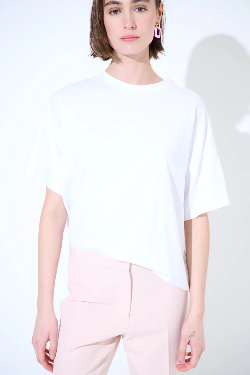 T-shirt basica a scatolina con manica calata.