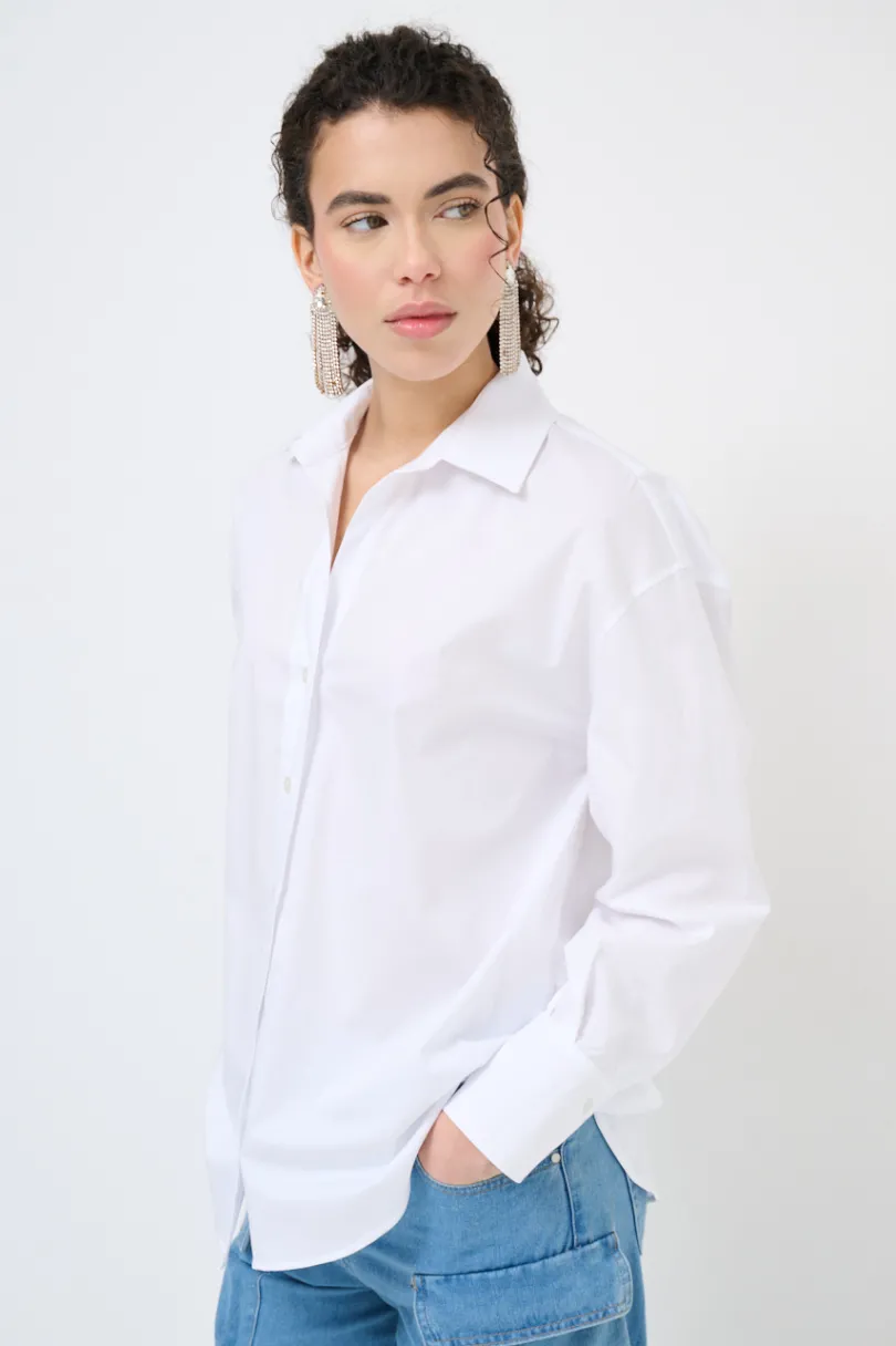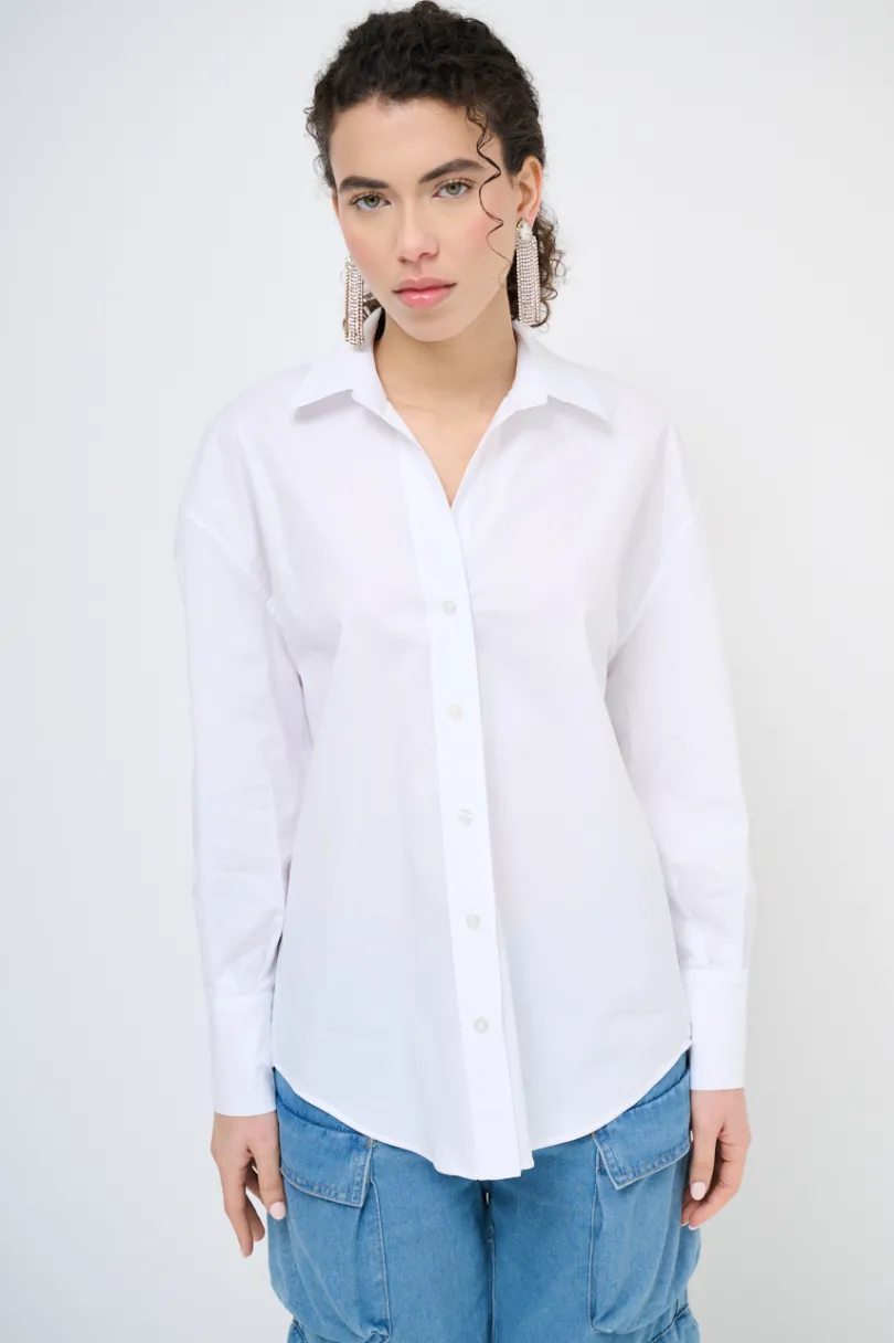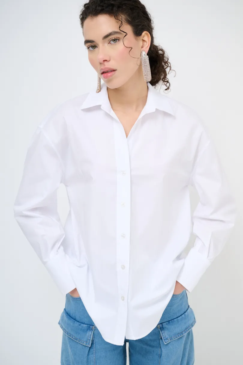 Camicia oversize in cotone con polsino alto e doppio bottone.