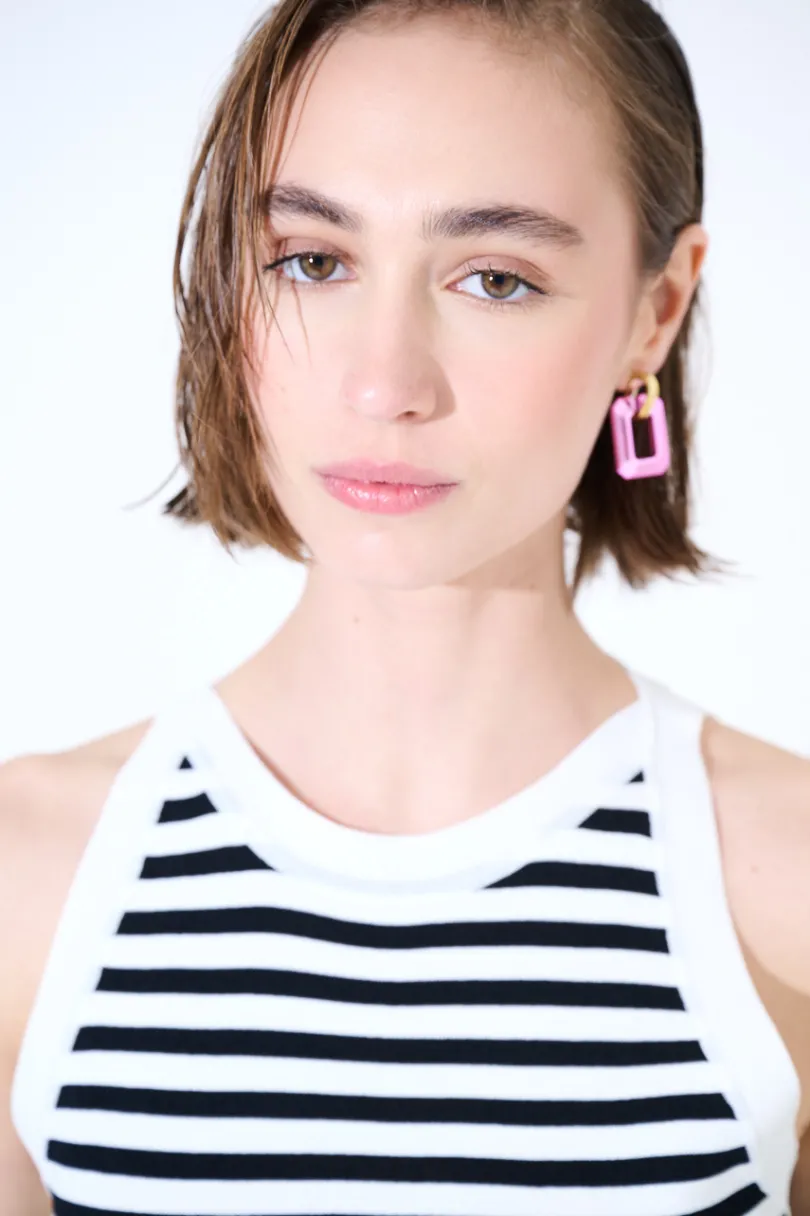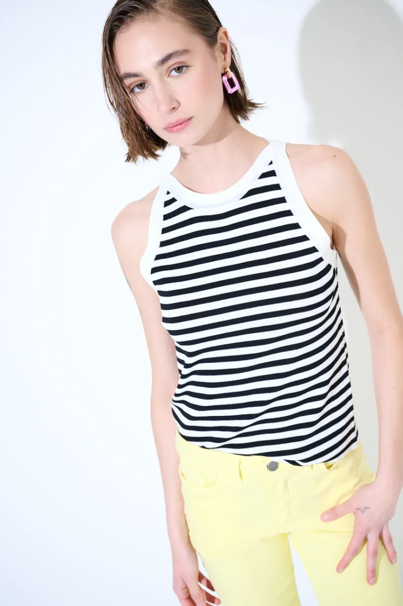 Canotta a righe con scollo americana.