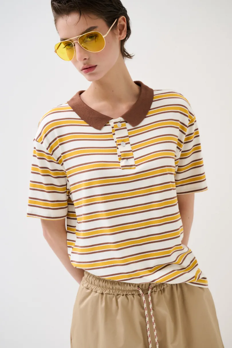 Hot KIKISIX POLO CROP CON SPACCHI A RIGHE M/MANICA SENAPE