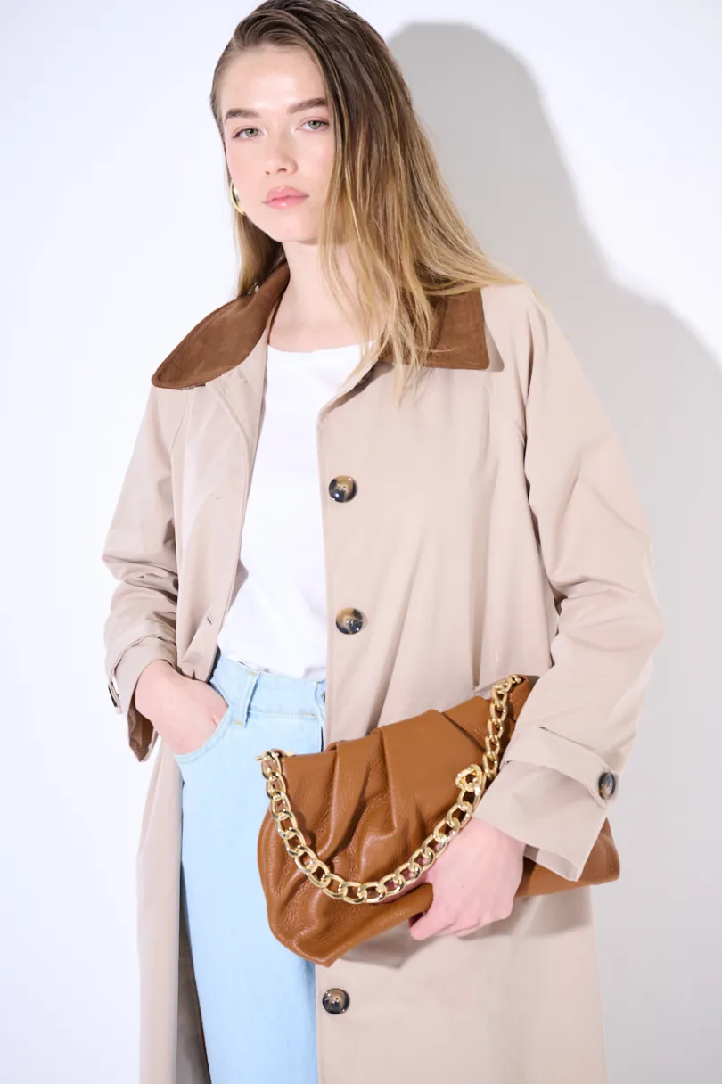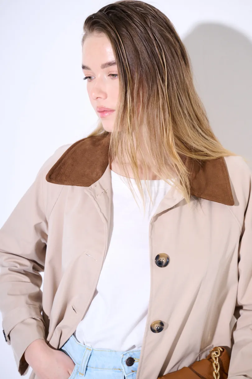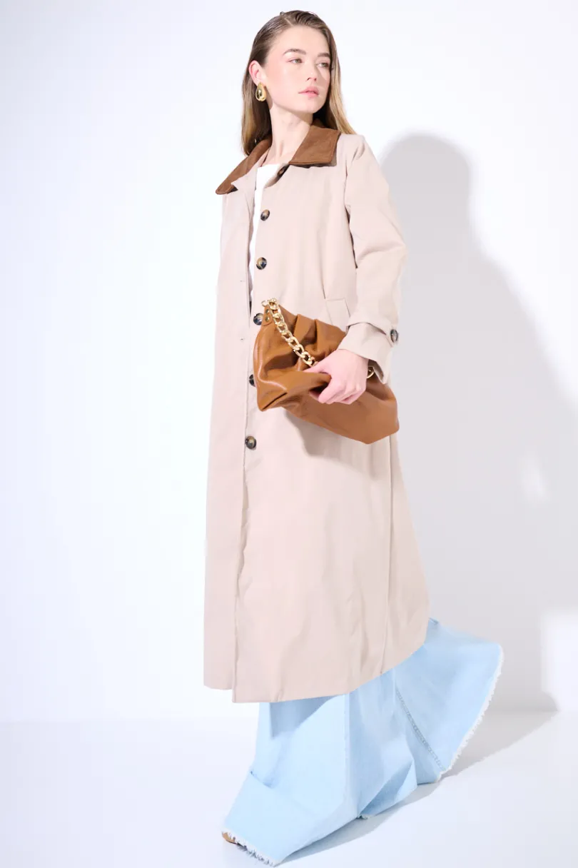 Hot KIKISIX TRENCH LUNGO OVERSIZE CON COLLETTO IN DAINETTO BEIGE/MORO