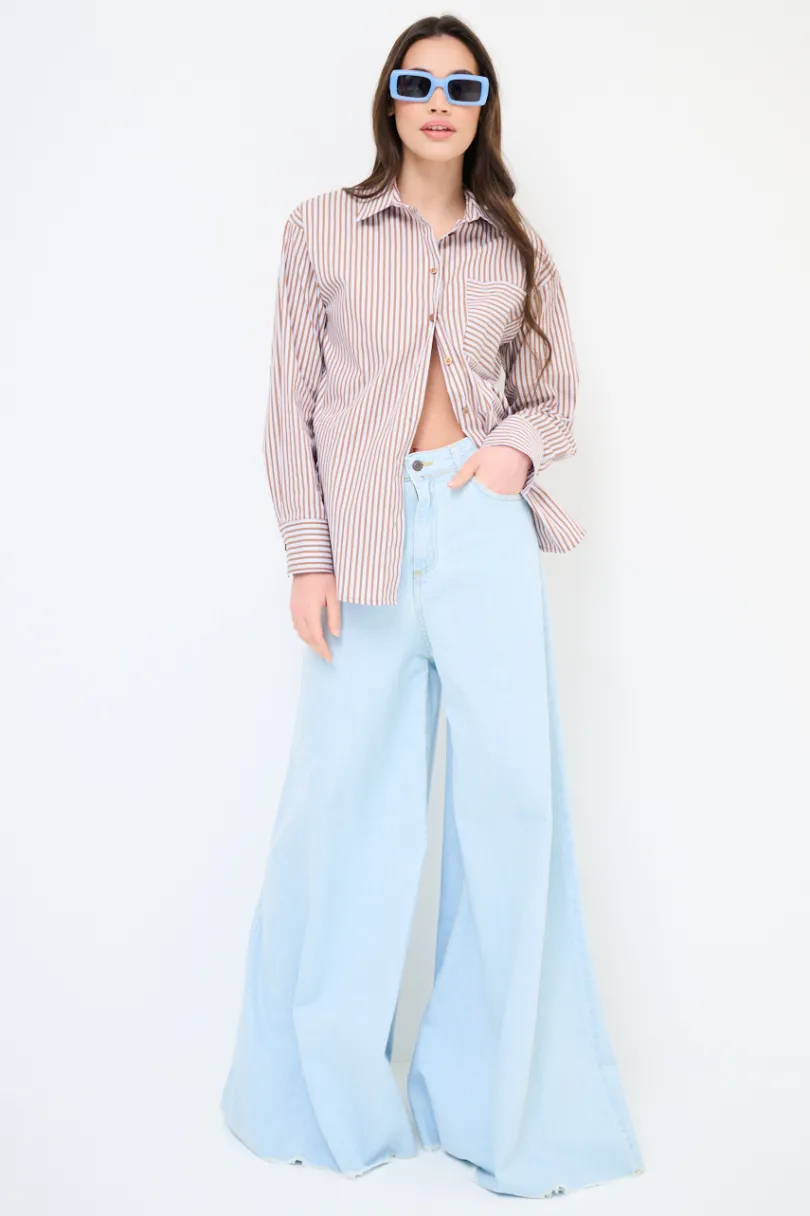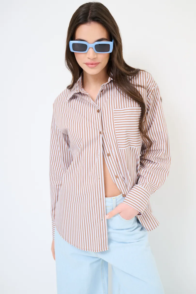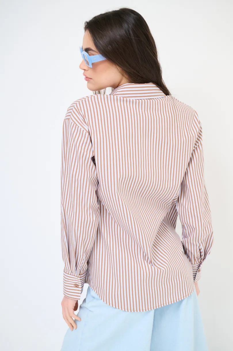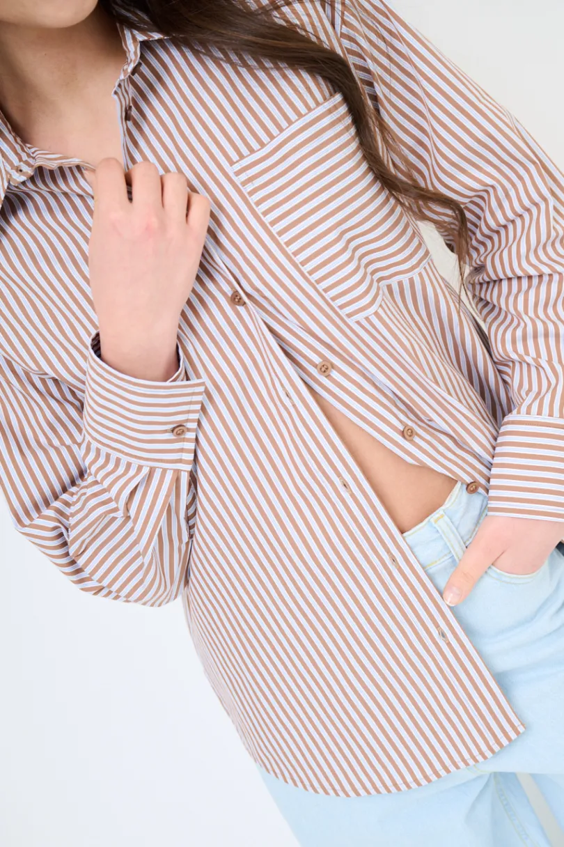 Camicia over a righe con manica lunga con polsino alto e taschino frontale.