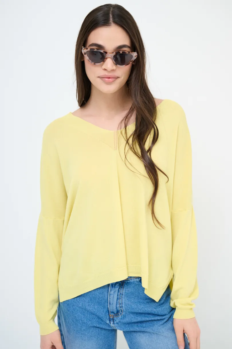 New KIKISIX MAGLIA SCOLLO V OVER MANICA LUNGA GIALLO
