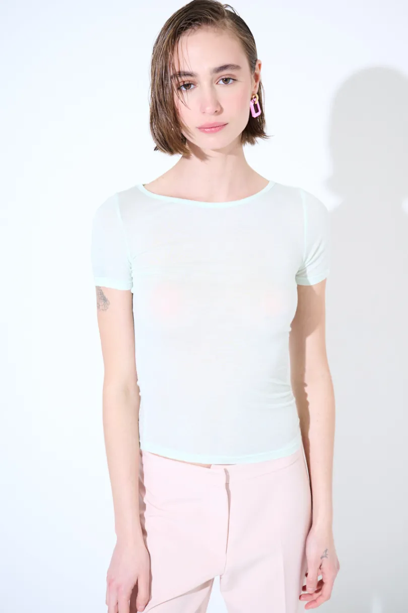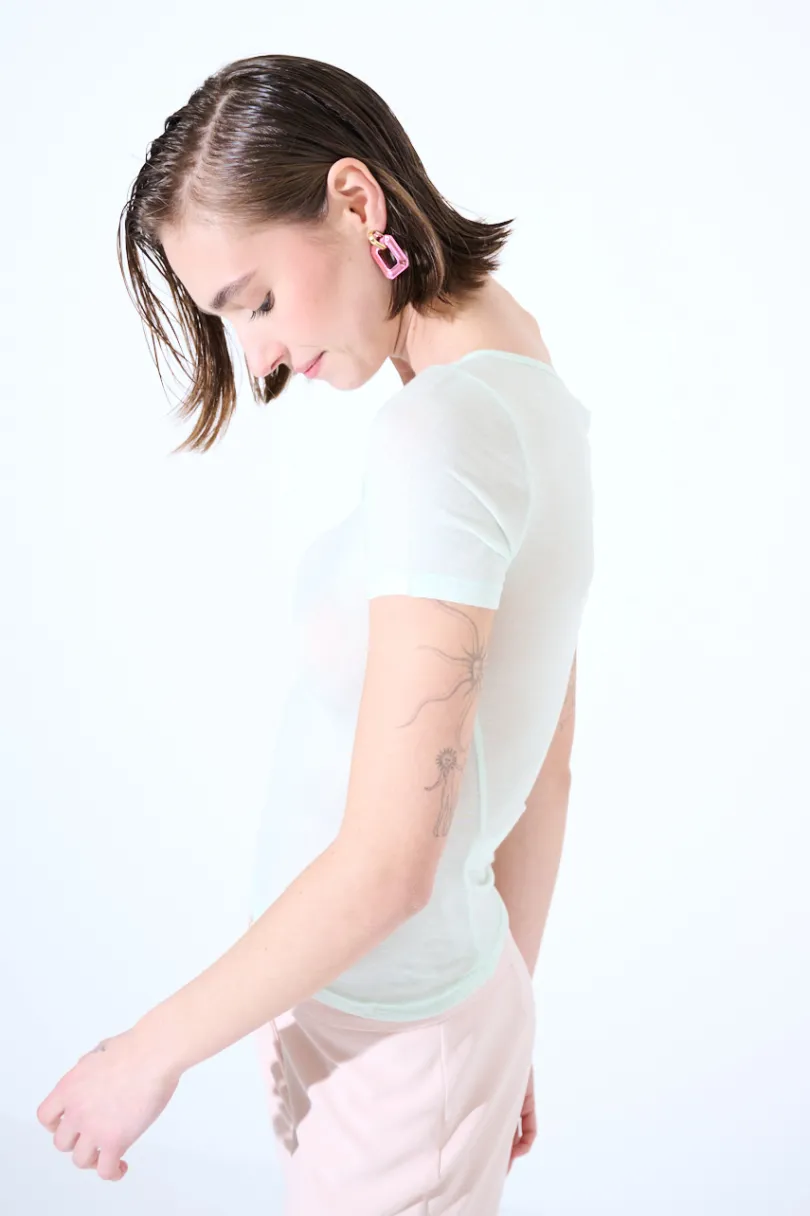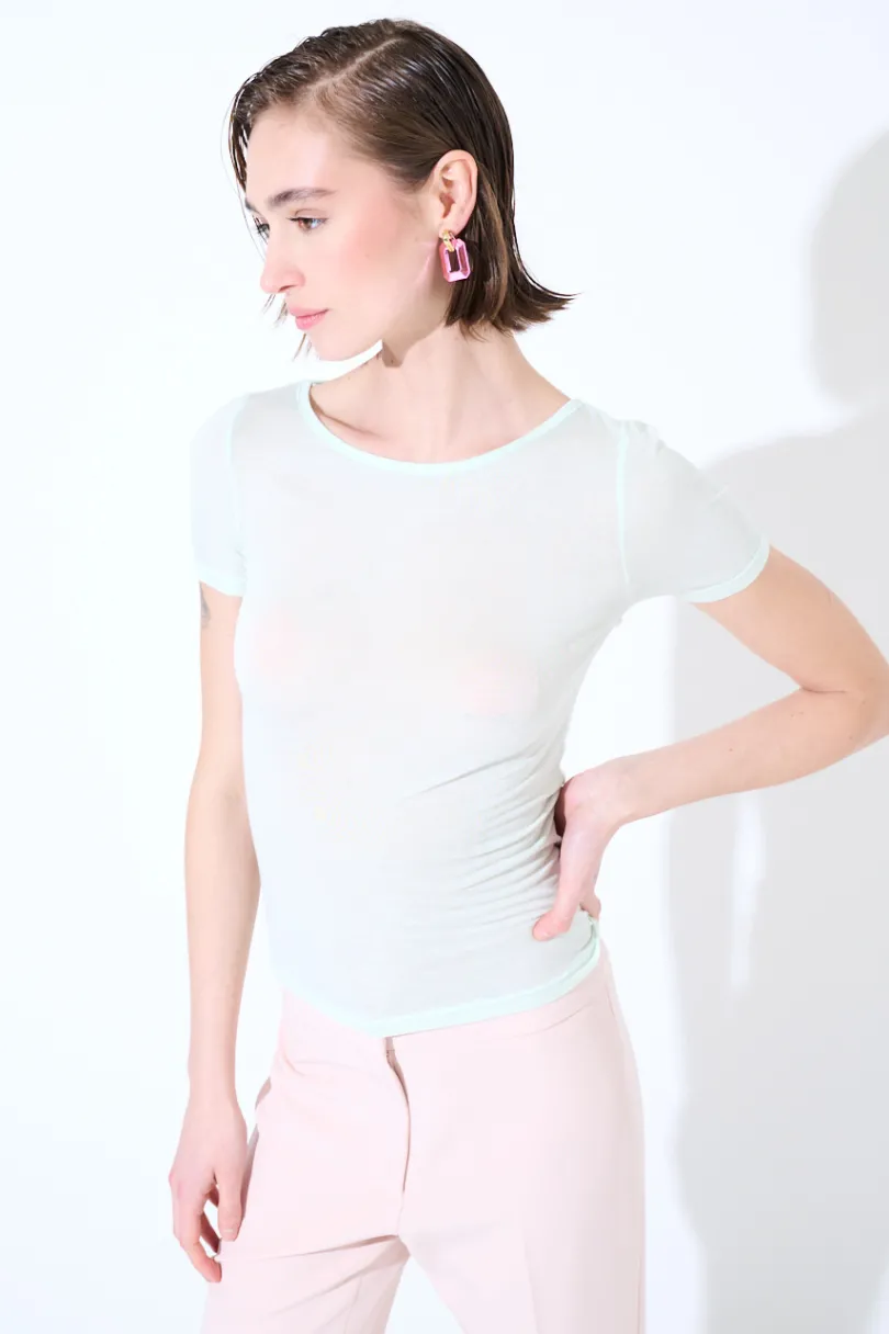 T-shirt basica in misto seta a mezza manica.