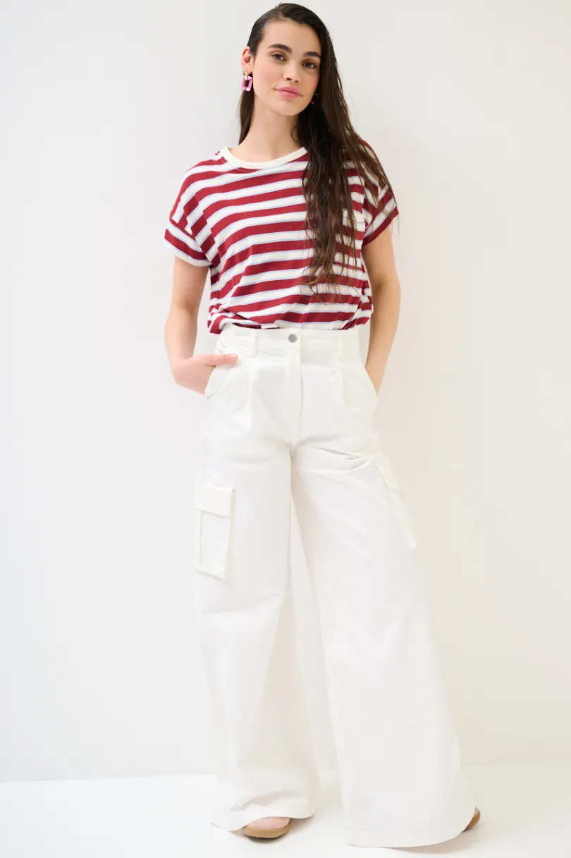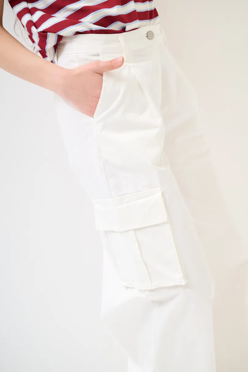 Pantalone in gabardina largo con tasconi laterali e pinces.