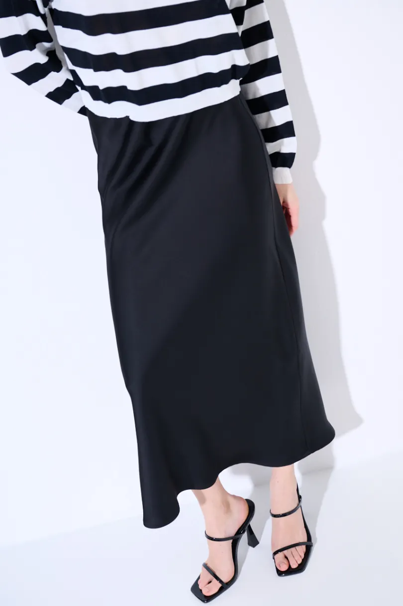Gonna lunga in raso sfiancata, con elastico in vita.