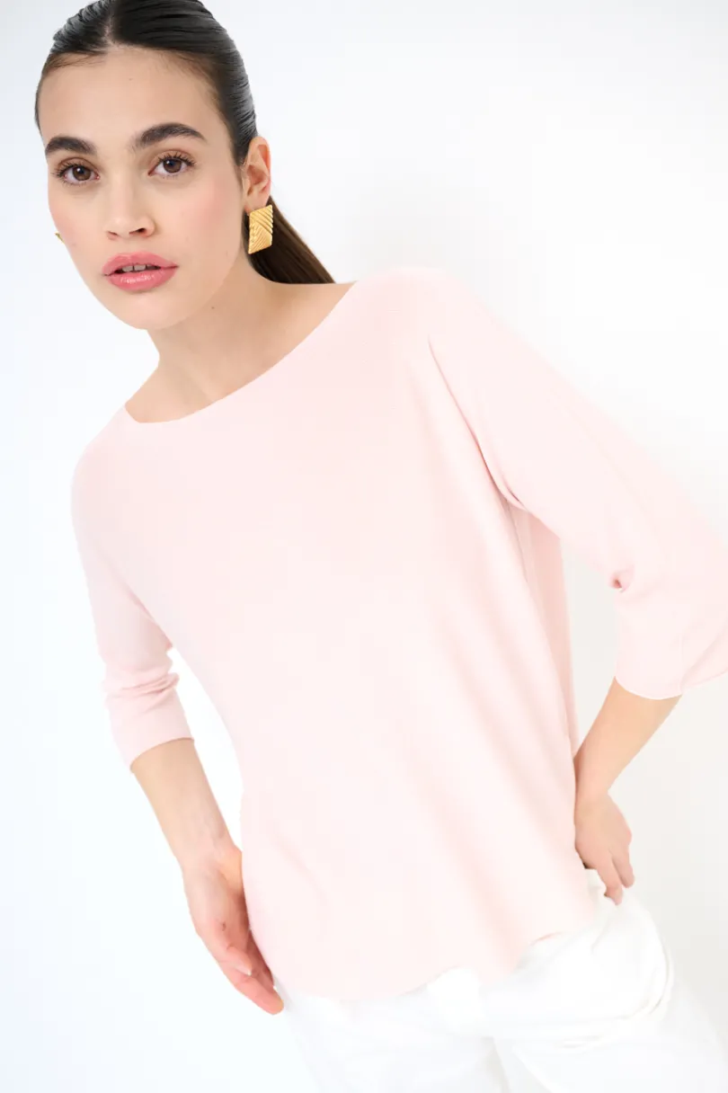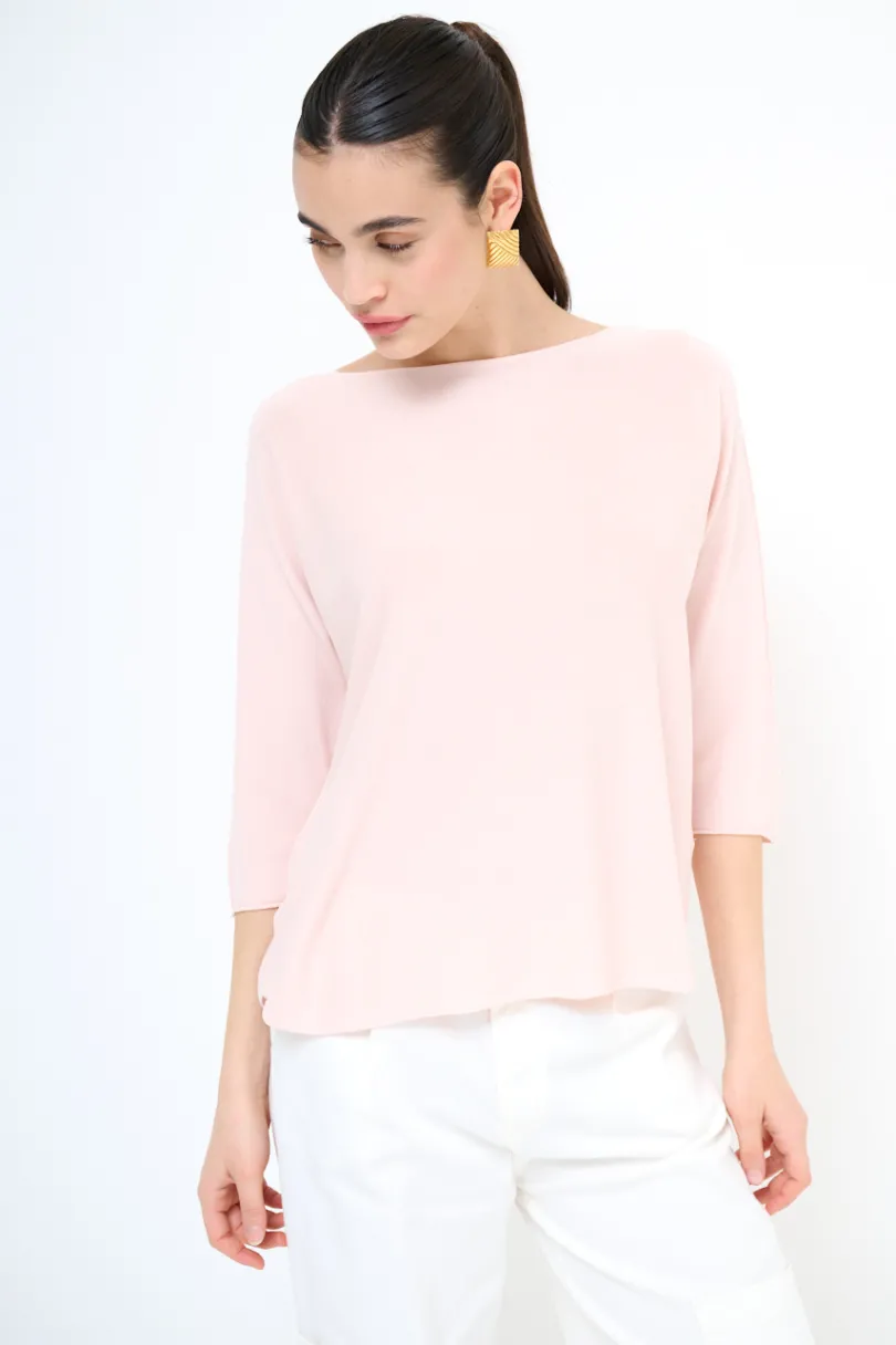 Online KIKISIX MAGLIA OVER SCOLLO BARCA MANICA 3/4 ROSA