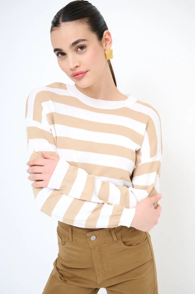 Online KIKISIX MAGLIA PARICOLLO CROP RIGHE BEIGE