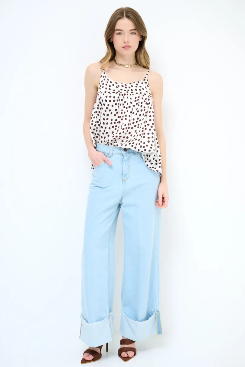 Top canotta a pois con laccio sulla schiena, spalline sottili regolabili.