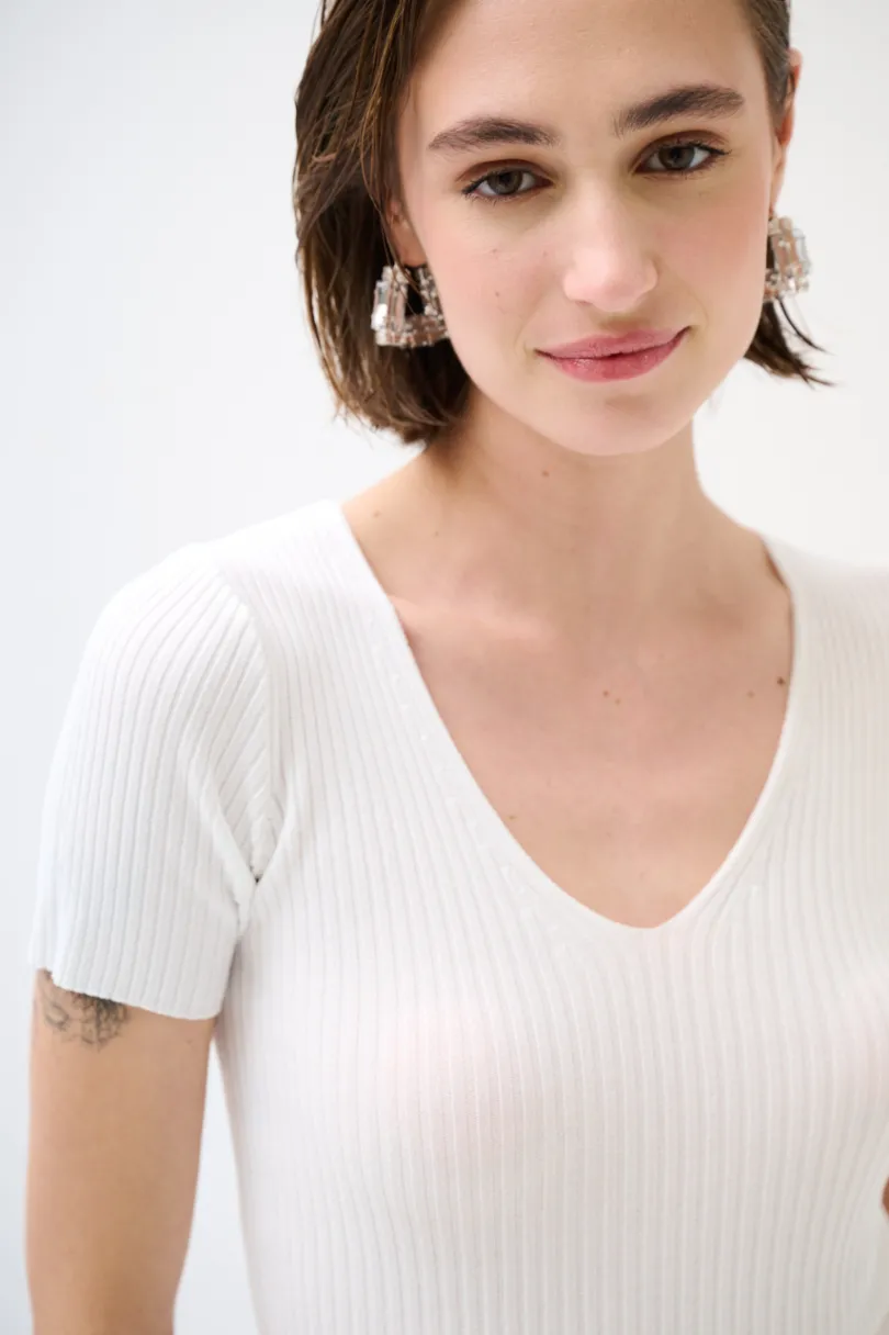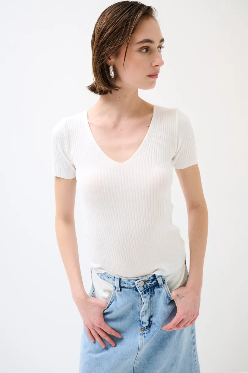 Maglia a mezza manica a costine in viscosa.
