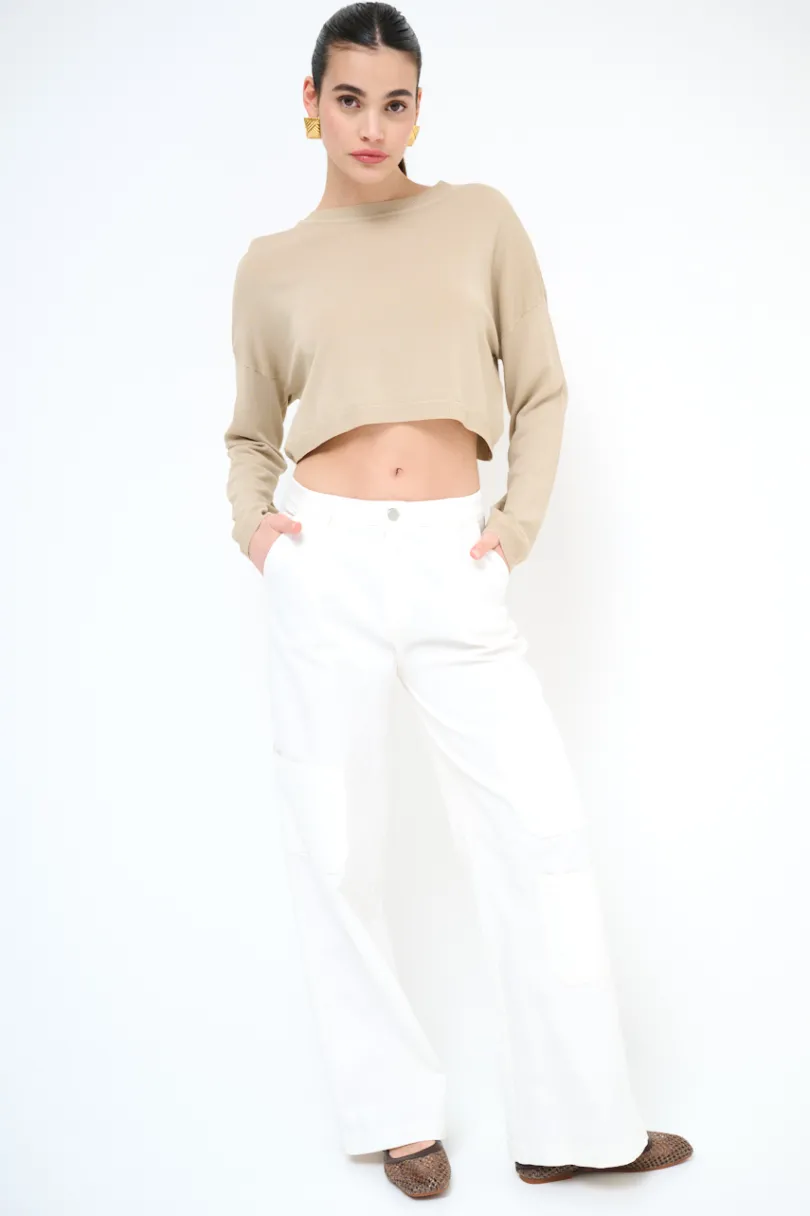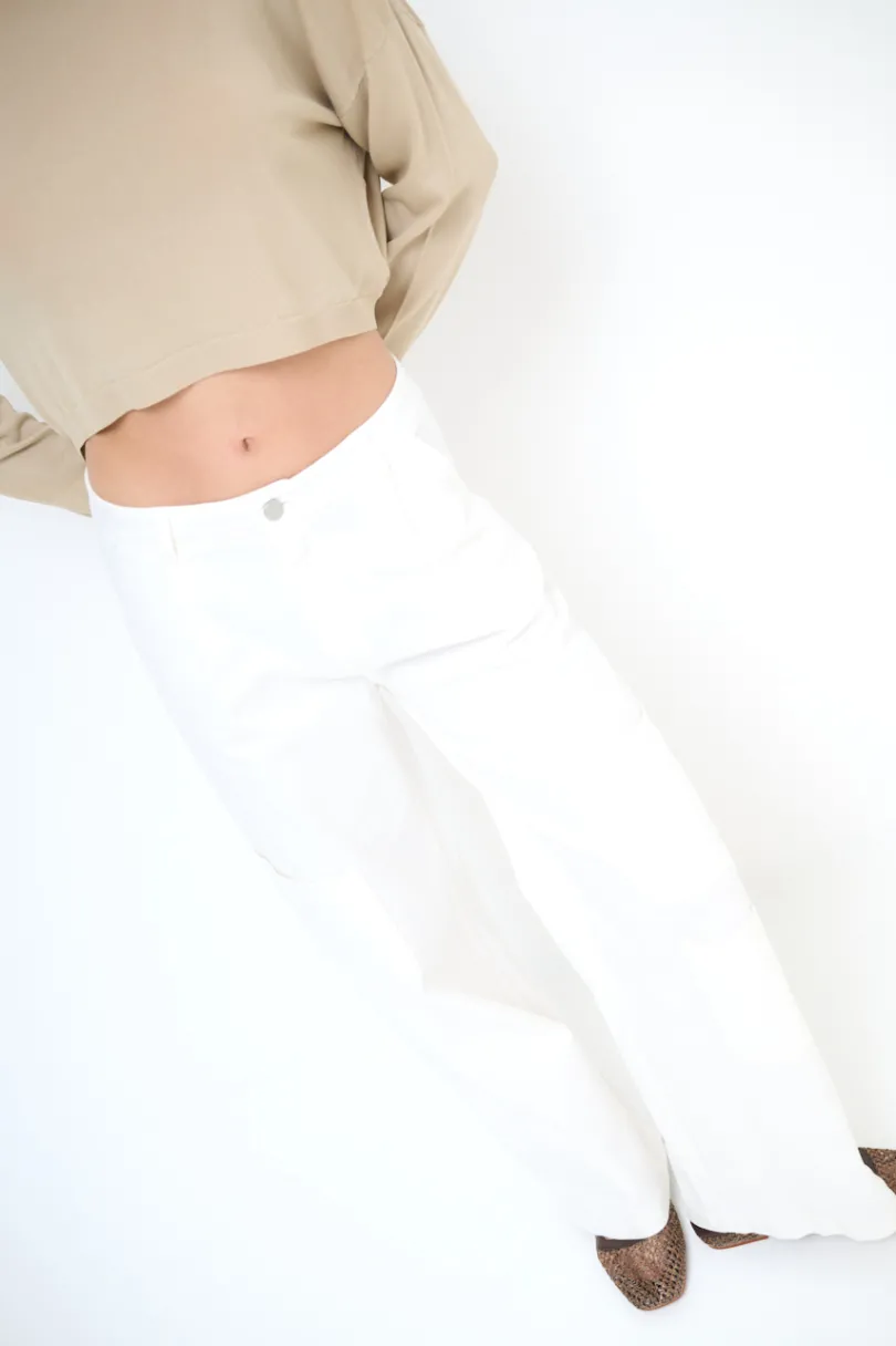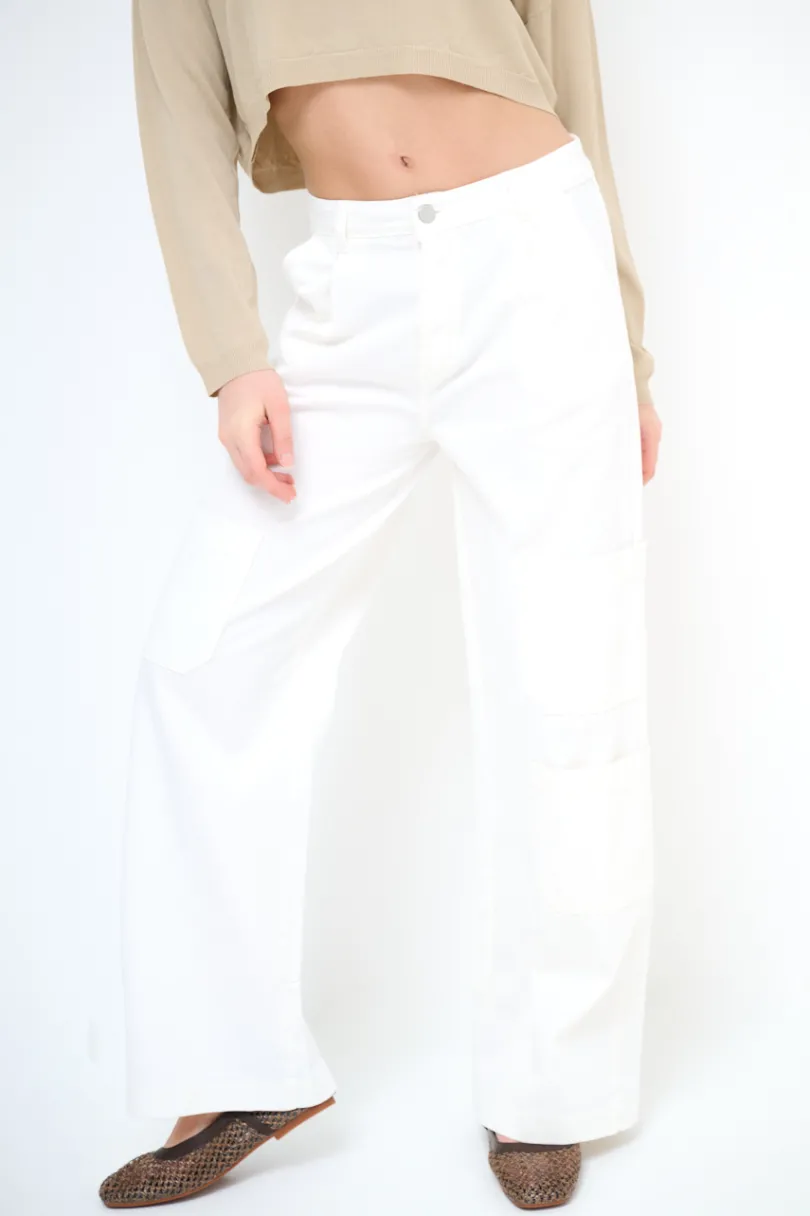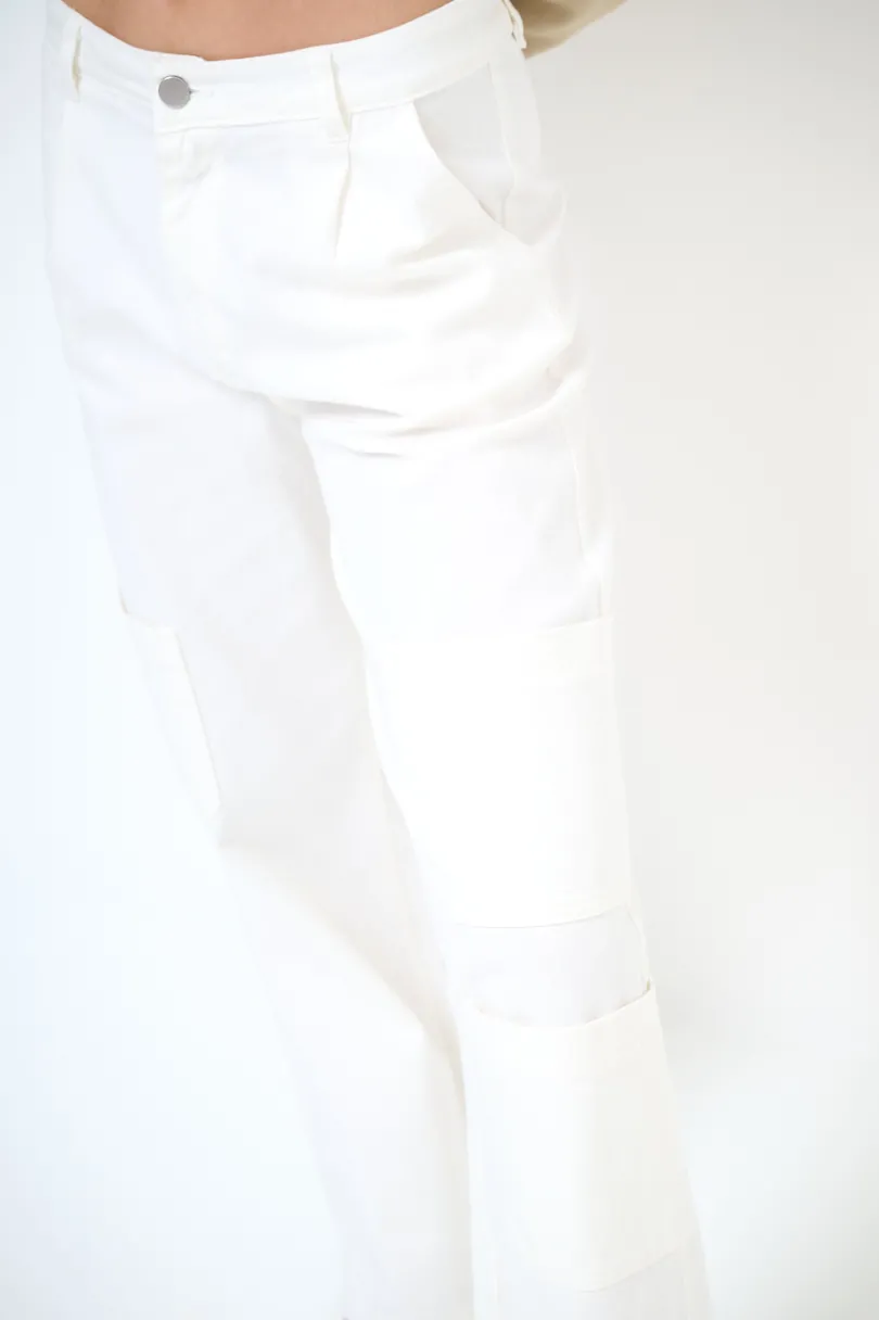 Pantalone cargo in gabardina di cotone, con tre ampi tasconi.