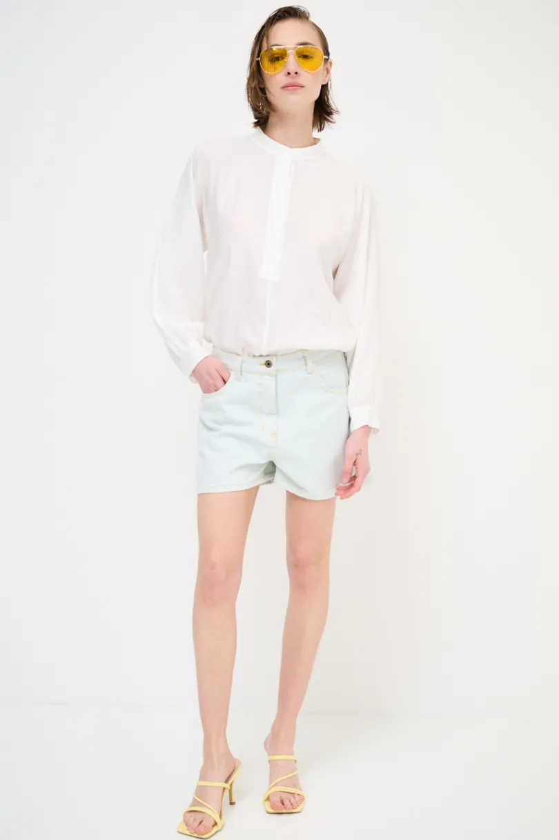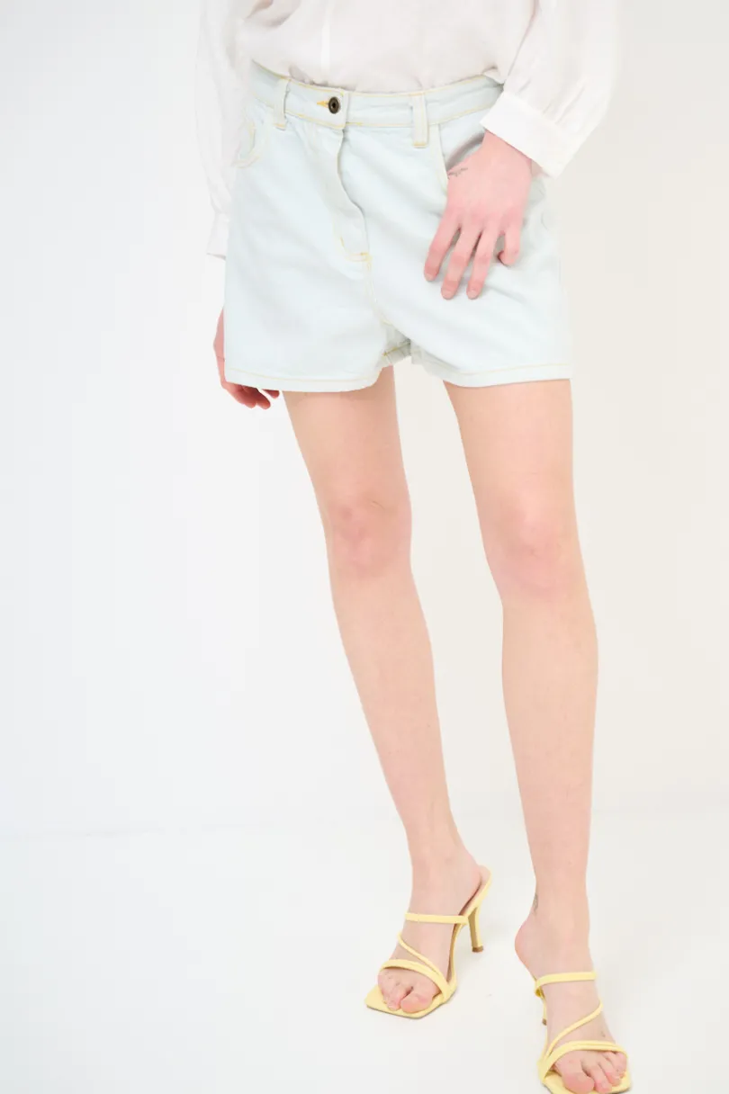 Shorts in denim con cuciture a contrasto, a 5 tasche.