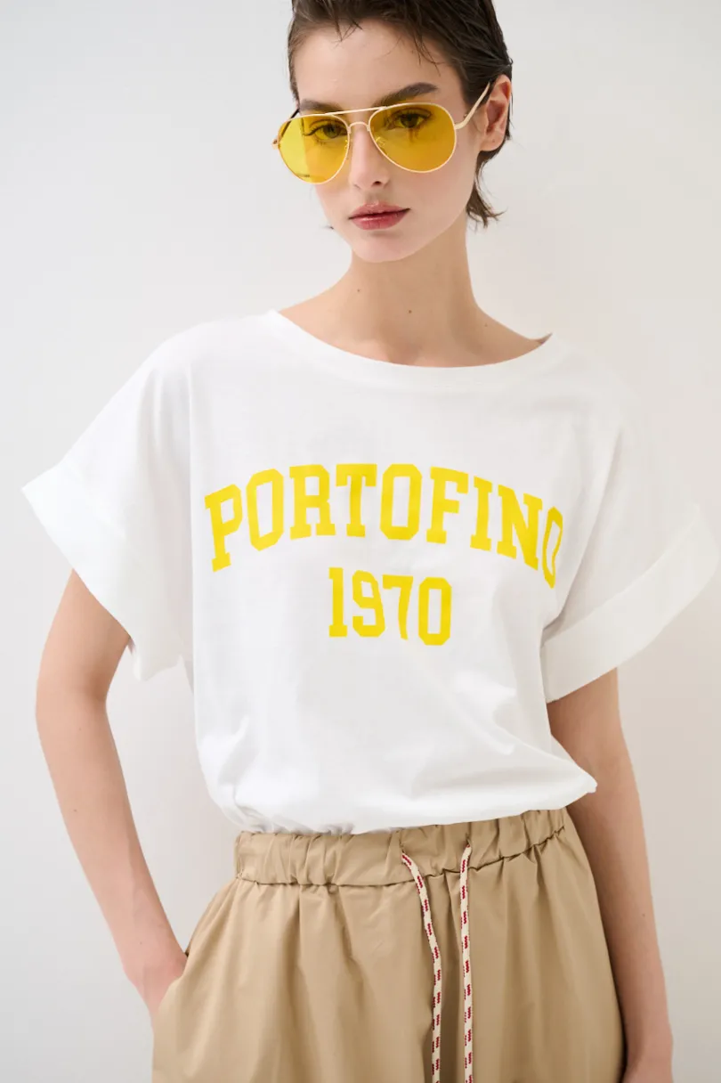 T-shirt a girocollo con manica ad aletta con risvolto, con stampa “portofino”.