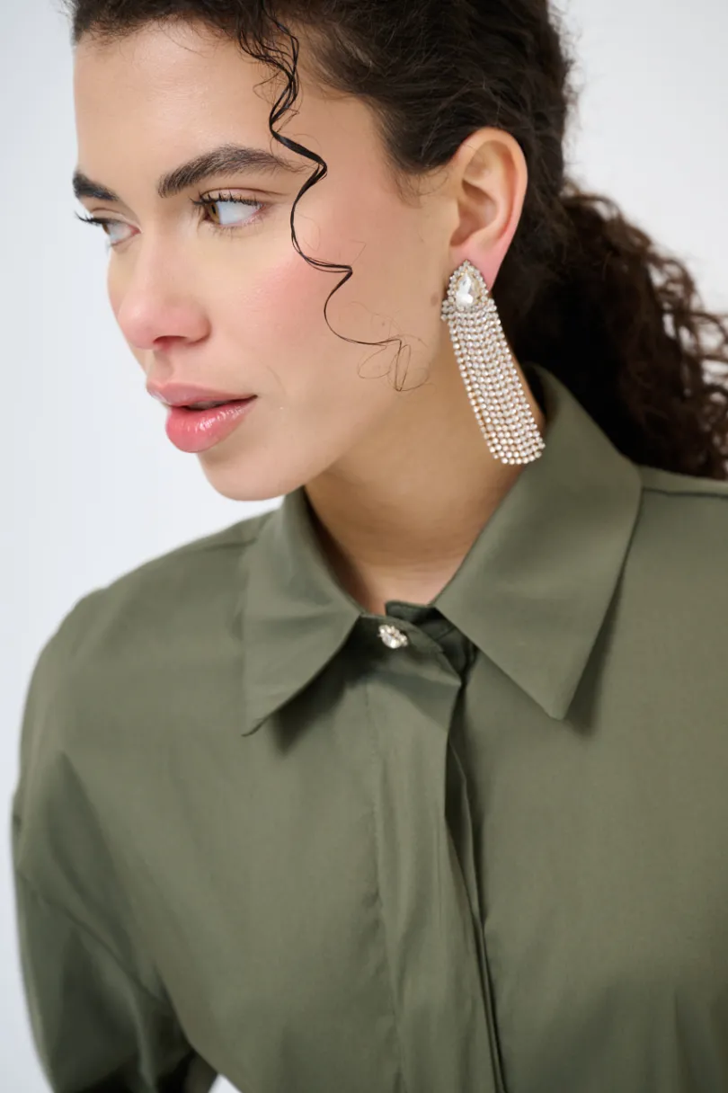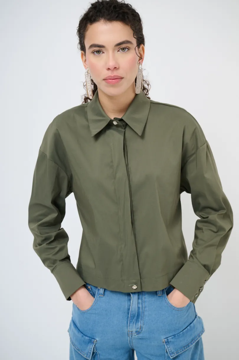 Camicia in popeline crop con bottoni gioiello e abbottonatura nascosta.